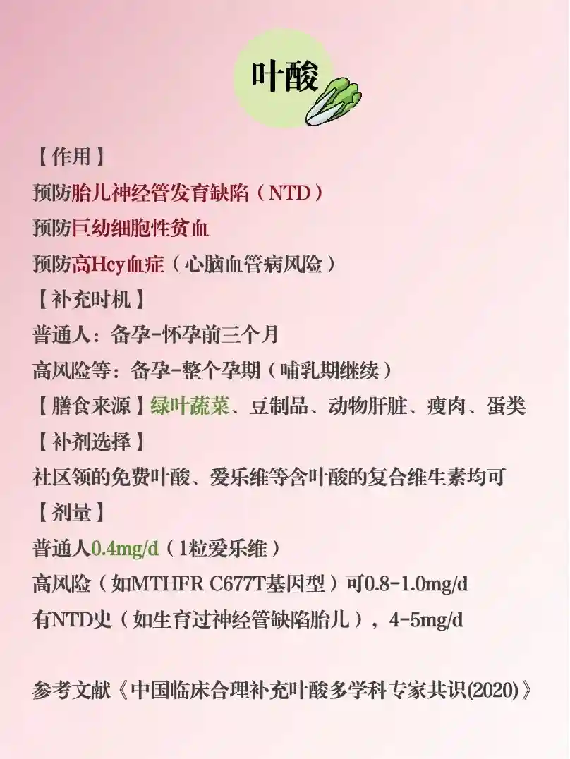 🥬叶酸(备孕起-至少怀孕后三个月)🌟