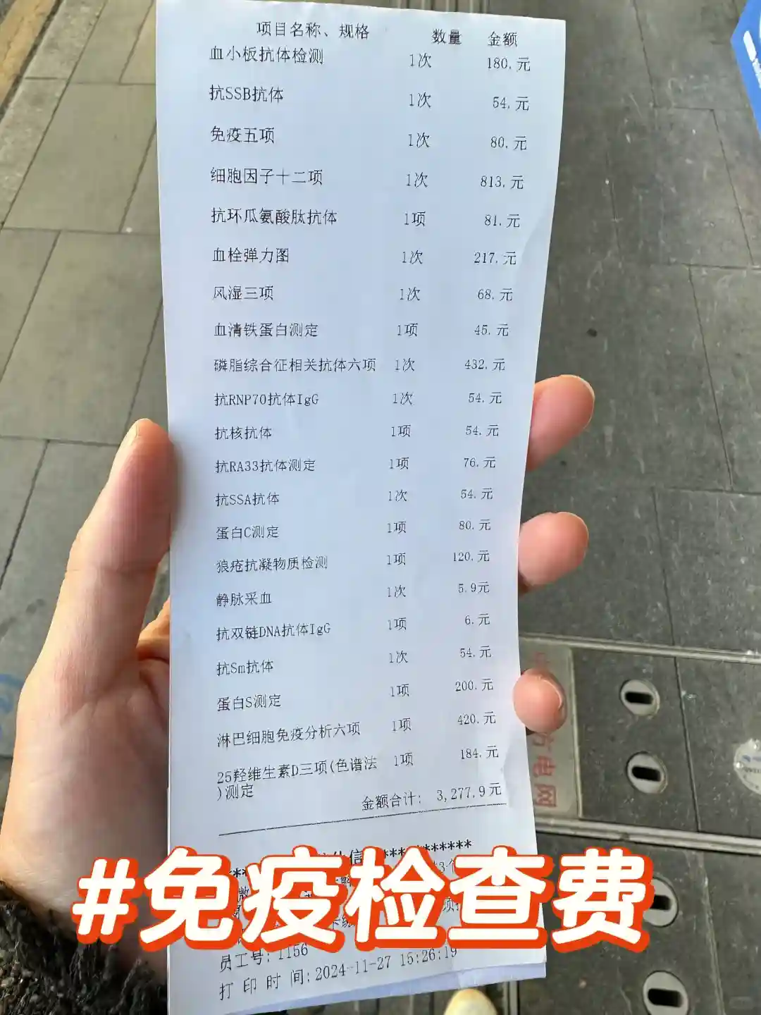 全套的检查费用需要四千多,因为我8月份做试管前,查了一部分基础免疫,所以这次医生没有重复开单,把其余没做免疫都补上了。费用三千多(图1有写)。