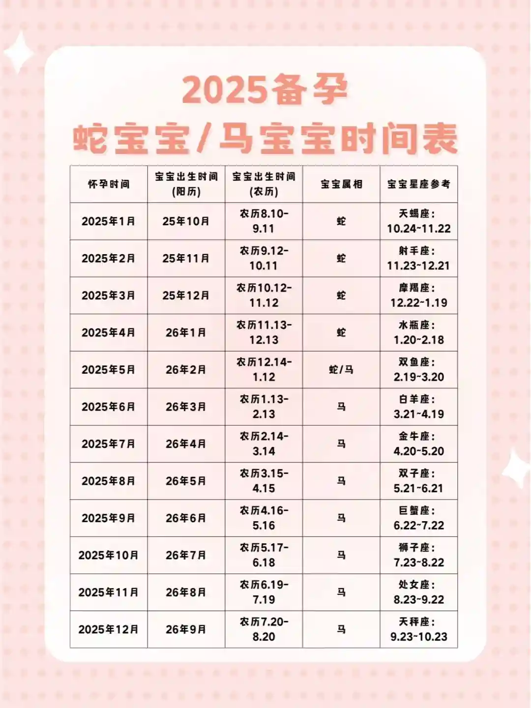 🔍“2025备孕蛇宝宝/马宝宝时间表”见图