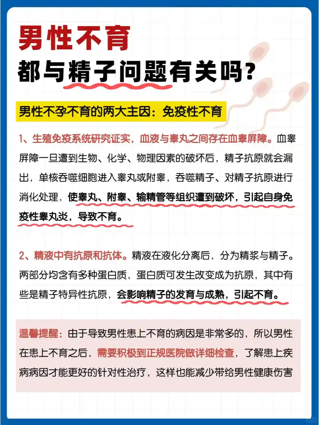 ✅温馨提醒:由于导致男性患上不育的病因是非常多的,所以男性在患上不育之后,需要积极到正规医院做详细检查,了解患上疾病病因才能更好的针对性治疗,这样也能减少带给男性健康伤害