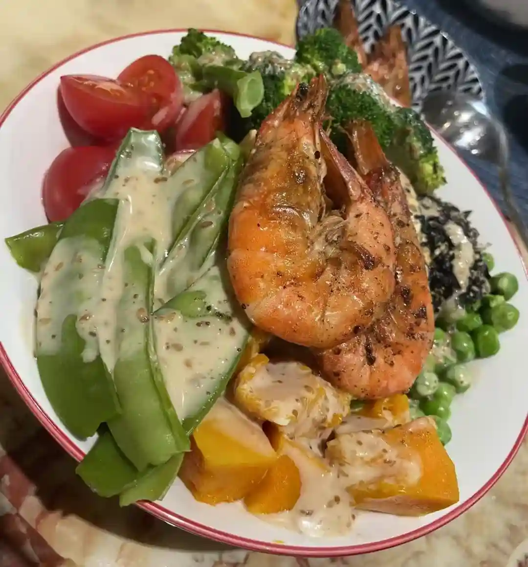 我就开始了严格的控制体重的孕妇餐,白米饭换成了糙米饭,肉也换成鸡肉、虾、牛肉。蔬菜全部都是无油不煎炒的水煮。这样的孕妇餐都可以当减脂餐拉。但愿后面体重能控制一下