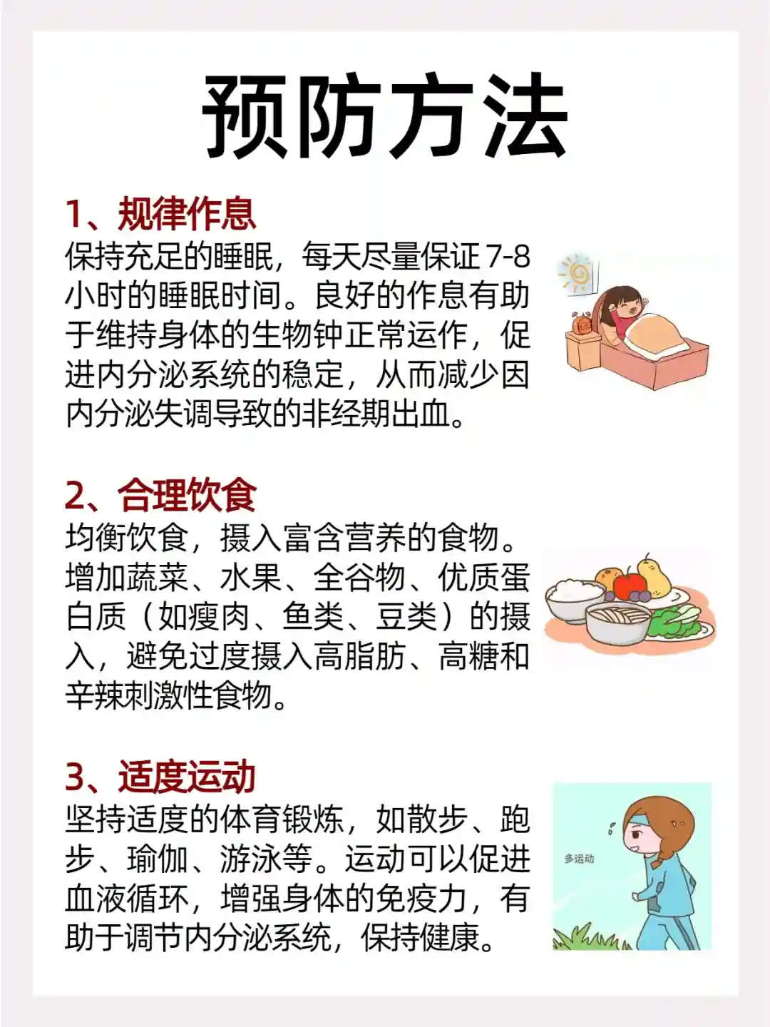 保持充足的睡眠,每天尽量 7 - 8 小时的睡眠时间。良好的作息有助于维持身体的生物钟正常运作,促进内分泌系统的稳定,从而减少因内分泌失调导致的非经期出血。