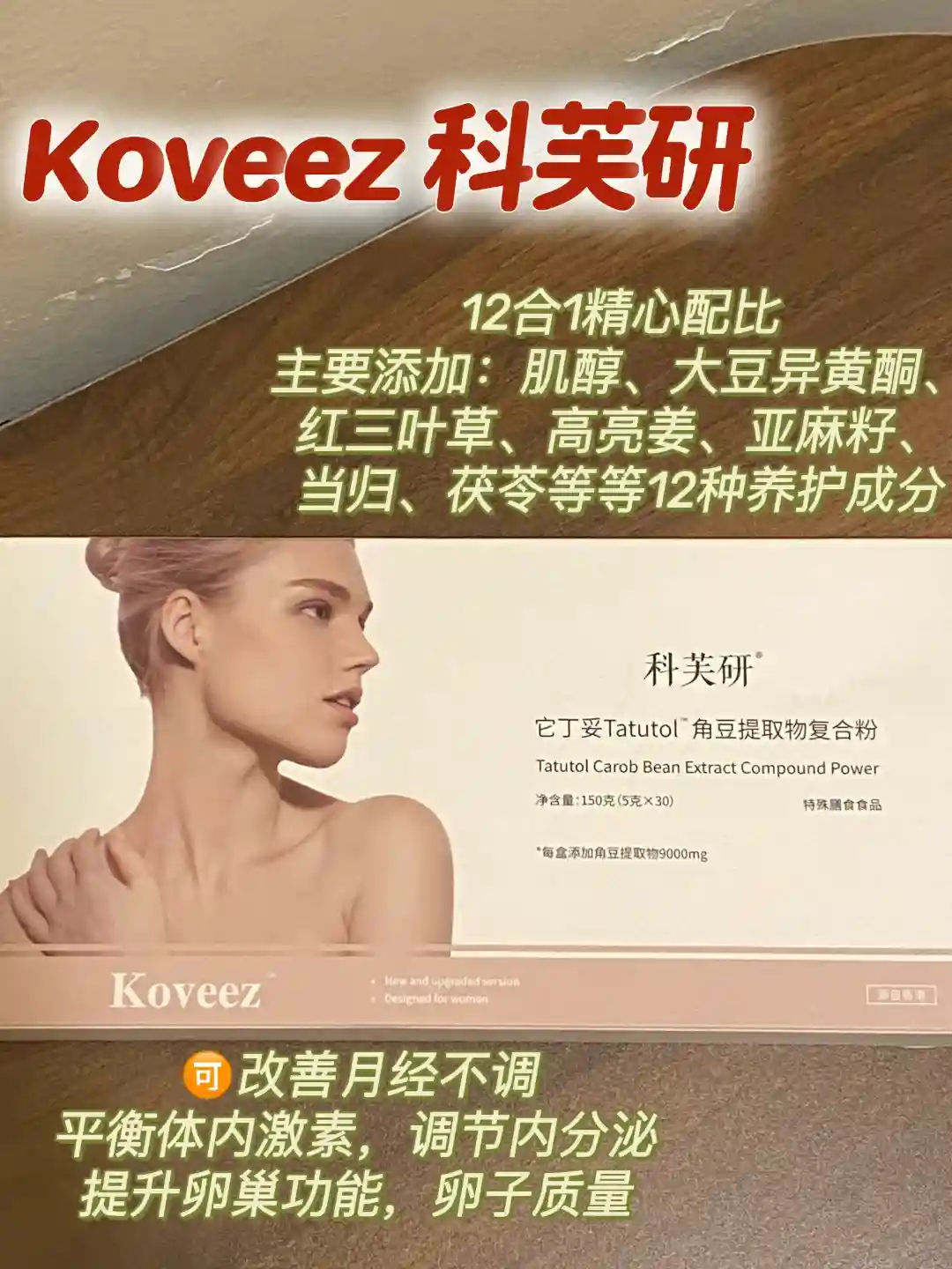 2. 尝试了第一次试guan后,朋友向我推荐inyoiic家的Koveez科芙研,一盒有满满9000mg肌醇,单独一袋就有300mg,高出同类产品2倍。还复配了大豆异黄酮、红三叶草、高良姜、人参、当归、阿胶、红枣等等,不同于单一配方,复配的更可靠,能改善卵巢早衰、提高卵泡质量和数量,帮助排卵、滋养卵巢、调节内分泌以及改善月经不调。我也试了2个月,到了第3个月,我的月经来了。尽管偶尔忘记服用,意外的好消息却迅速而至。