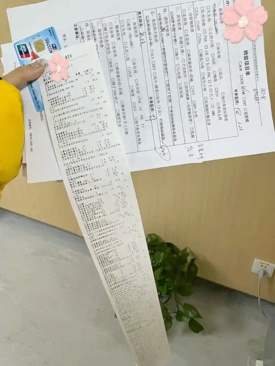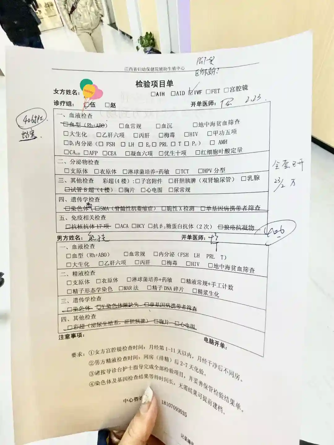 先说说我自己的情况:之前自怀两次,第一次自然流产,以为自己不小心没注意流掉了。(当时孕酮和hcg翻倍也很差。但是医生说第一次怀孕数据不准也很正常,七周有胎心 没有动脉阻力高的问题)第二次怀孕的时候 数据一直不理想 hcg翻倍不好 孕酮前期还好 到六周七周也不行 当时医生给我开了很多保胎的针 打绒促和肝素 但是还是不好 没有胎心 医生建议做人流手术后做胚胎染色体检查 结果是基因有问题后又查了我跟我老公的 我染色体平衡易位 好像是16和22号染色体 那会是22年2月左右的样子拿的我们俩的结果 现在也做好心理准备做三代试管了 记录一下自己的经历 2.23第一次是大姨妈第三天去的 检查了一下卵巢的基本功能 医生说我卵巢还可以 做三代成功率会比较高 然后开了全套检查看看其他的有没有问题吧 前期检查要去两次 一次是月经期间第二天第三天 还有一次就是月经走完超过两天就可以去 基本就是图一的那些检查了