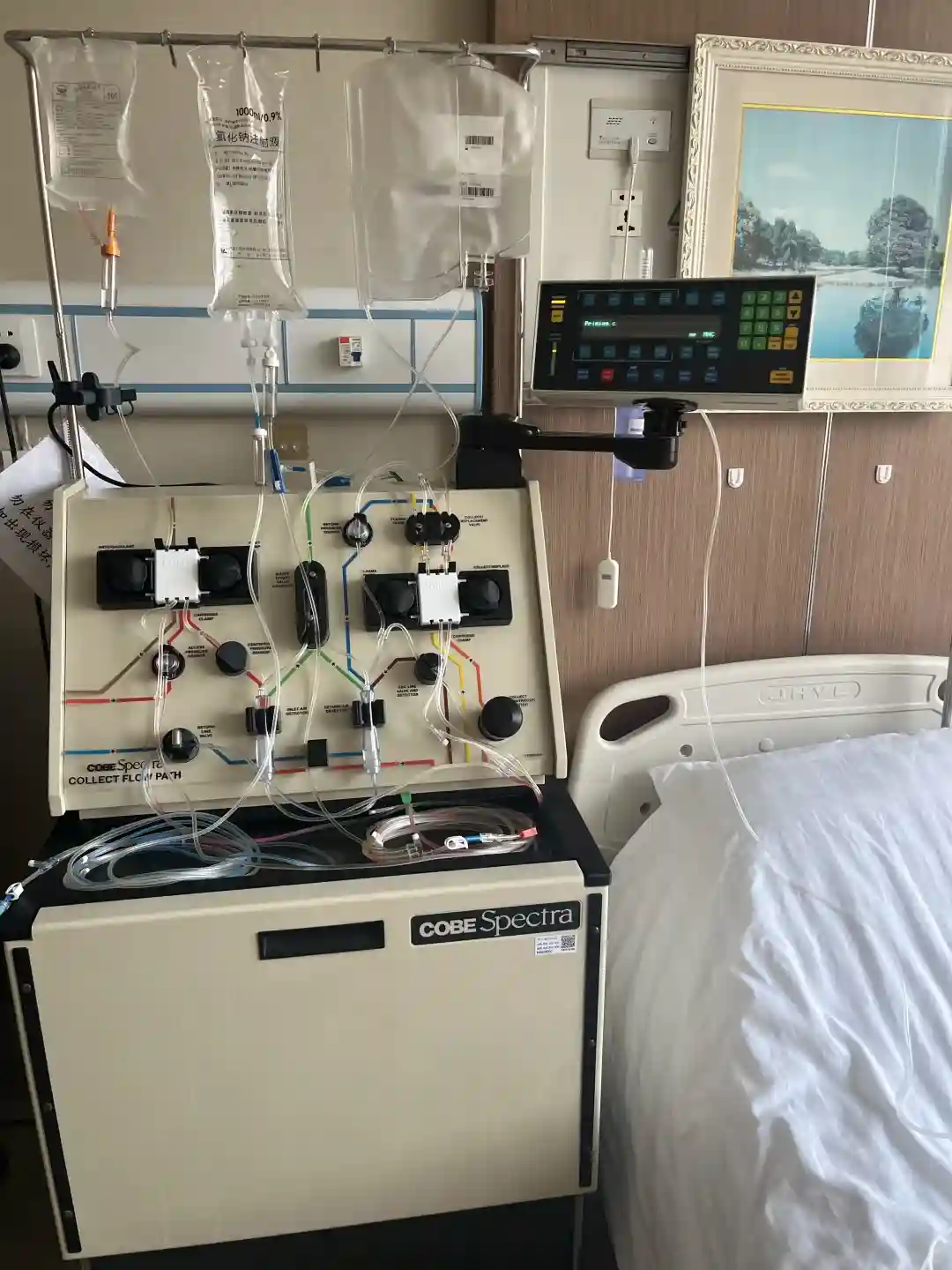 妈妈是二疗后移植,一疗如果确定要移植的话,就要进行基因匹配了,子女和父母是天然半相合,我和妈妈匹配是7/12.因为是独生女,虽然已婚已育但是也没有其他可选择的供者了。在二疗结束前,医院要求作体检(血常规、骨穿、心电图、腹部彩超、胸部x光)最害怕的是骨穿,腰上的伤口感觉三天才好。妈妈进仓后一周医院就通知去住院了,妈妈进仓后我突然想起来下周可能生理期,联系了主任,让吃点妈富隆。周一上午入院(不能用医保卡,全程自费)周一查血常规,(白细胞8.4中性粒6.06)打了支升白针,当天感觉有点畏寒。周二血常规(白细胞31.3中性粒27.98)。主任说细胞涨的很好,所以今天打了半支升白针。问主任能不能提前采干,主任说不行,受者还有其他的预处理。周三血常规(白细胞31.7中性粒27.9)半支升白针。周四血常规(白细胞31.3中性粒26.65)一支升白针,扎了留置针。周五血常规(白细胞38.1中性粒32.27)早上五点一支升白针,然后开始输液,一共两瓶,8点半去处置室,左手扎粗针(献血那种针头)血液出,中间有一个大型机器(正好院长查房,说这个机器60万)通过离心作用把需要的干细胞提出来,剩下的血液通过右手(又扎了一个留置针)回输回身体。抽取过程不能动,所以前一天晚上开始我就没喝水了,全程4小时多一点,期间隔半小时就要喝点葡萄糖酸钙,不然会手脚麻,嘴麻。大概两小时后,我就感觉腰困,问了护士说白细胞高一直躺着就这样,无解。护士小姐姐一直说我细胞好,抽的快,最后机器显示四小时我身体的血液循环了14次,分离出了280的干细胞。左手拔针,在起床那一刹那,腰就不疼了。除了手上针眼疼没有任何副作用。老公一直问能吃点啥补补,护士说清淡饮食,不用补,肉蛋奶都别吃,不然怕血液太粘稠。下午通知明天再采120。周六血常规(白细胞36.7中性粒30.94)一支升白针,两袋液体。10点半去处置室,护士姐姐换了个机子说今天指标没有昨天好,可能比较慢。依然半小时两瓶葡萄糖酸钙,两小时搞定,我说还可以多抽点,护士说有准确的剂量,多了容易排异。今天抽完我没有任何症状,生龙活虎。拔留置针,结束!妈妈还打过好几个电话问我情况,自己虚弱的也还是惦记孩子,我就扎了几针天天说针眼疼,妈妈天天扎好多,而且一个人躺在仓里该多害怕呀。以前你生我,养我,现在让我的干细胞替我守护你吧……你一定会好好的!!