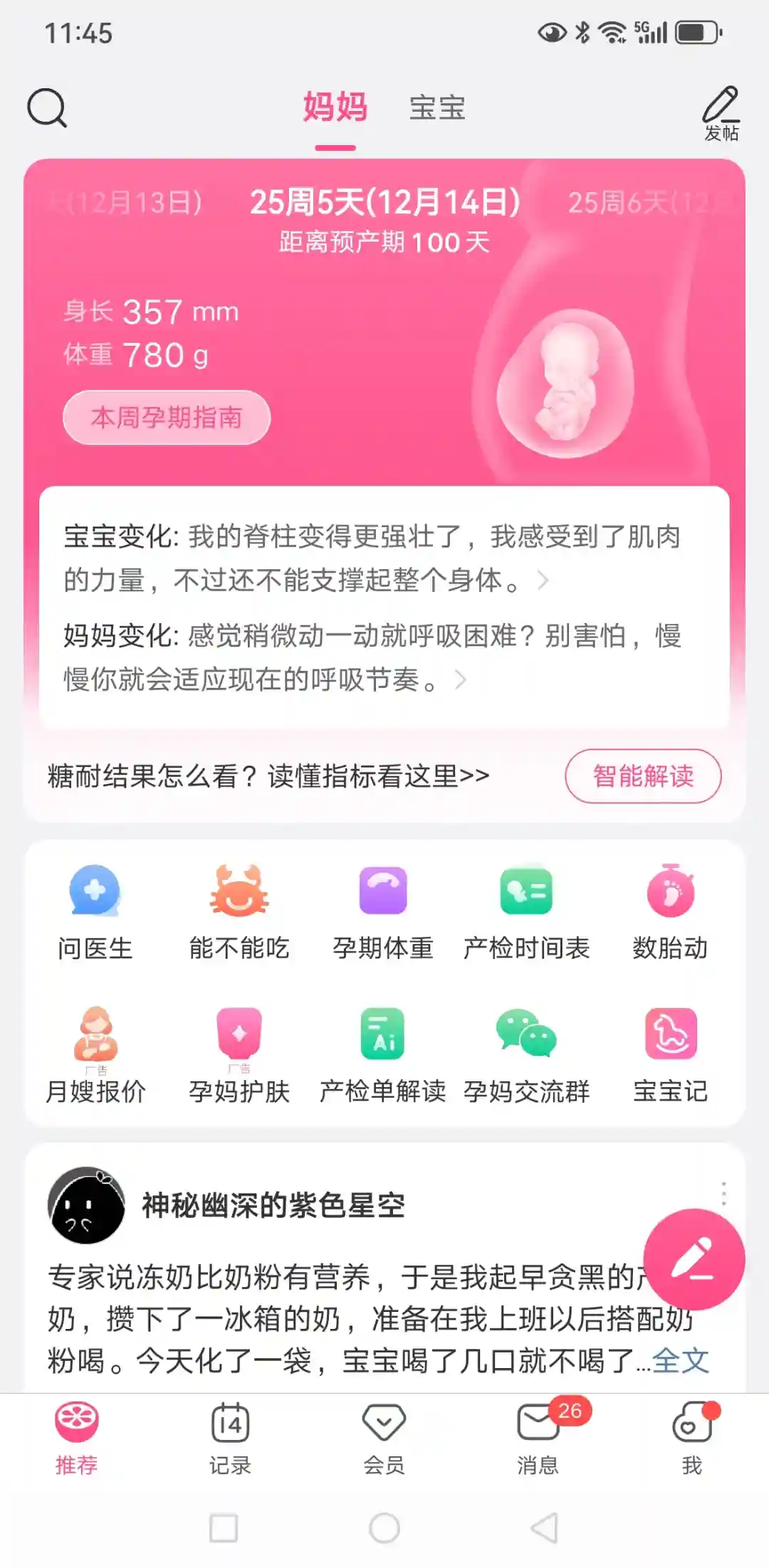 接着华西建档待产,很相信他们。 现在每天感受着她(他)在肚子里动着,很幸福,孕期没太多不适感,甚至都没有吐过。天使宝宝到我身边了
