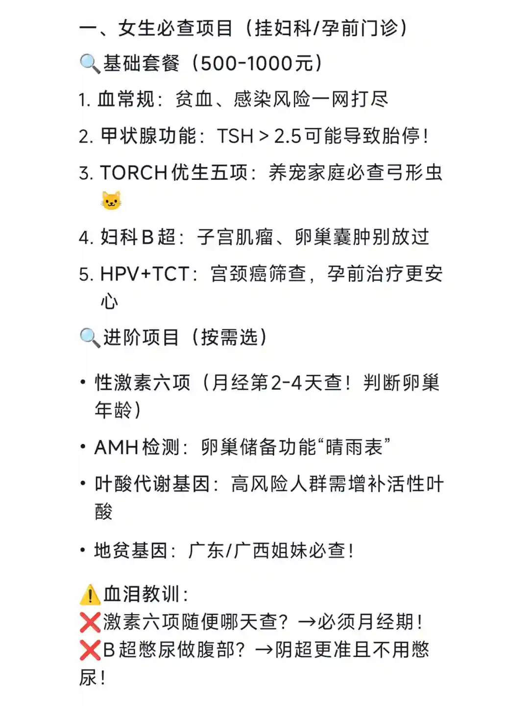 一、女生必查项目(挂妇科/孕前门诊)