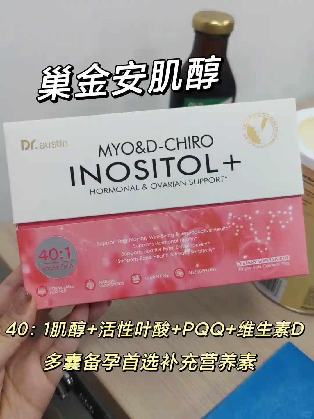 说说我吃的最久的:巢金安肌醇,双效肌醇+活性叶酸+PQQ+维生素d,还有其他复配营养:圣洁莓、薰衣草、洋甘菊,营养吸收太全面了,叶酸和PQQ都是帮助提升卵泡的,肌醇就不用多说了,改善多囊和糖代谢,这款吃了三个月,一直吃到查出两条杠~