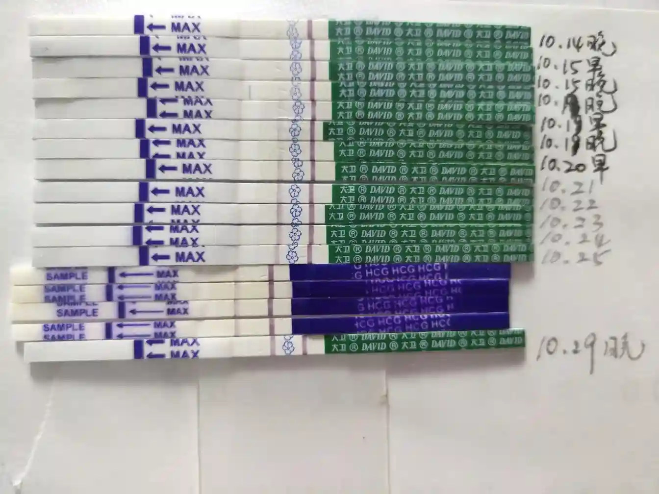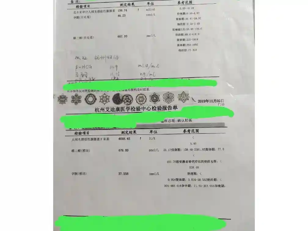 刚开始一切都是那么美好,很开心,觉得省下了十几万,可是三次少量出血后,进入保胎流程,刚开始是在家,后面住院,hcg涨得不好,但是一直在涨,虽然打各种保胎针使得肚子、两只手臂全部青肿,但也值得,后来hcg开始下降了,就觉得该放弃了~