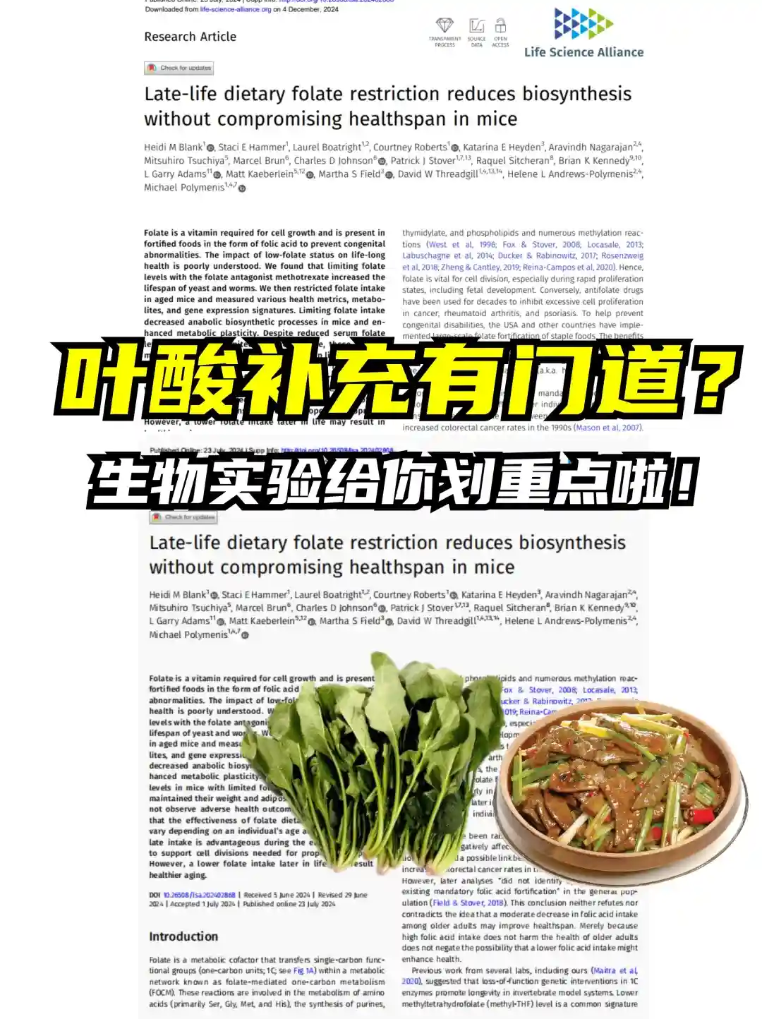 🤯叶酸补充有门道❓生物实验给你划重点啦✅