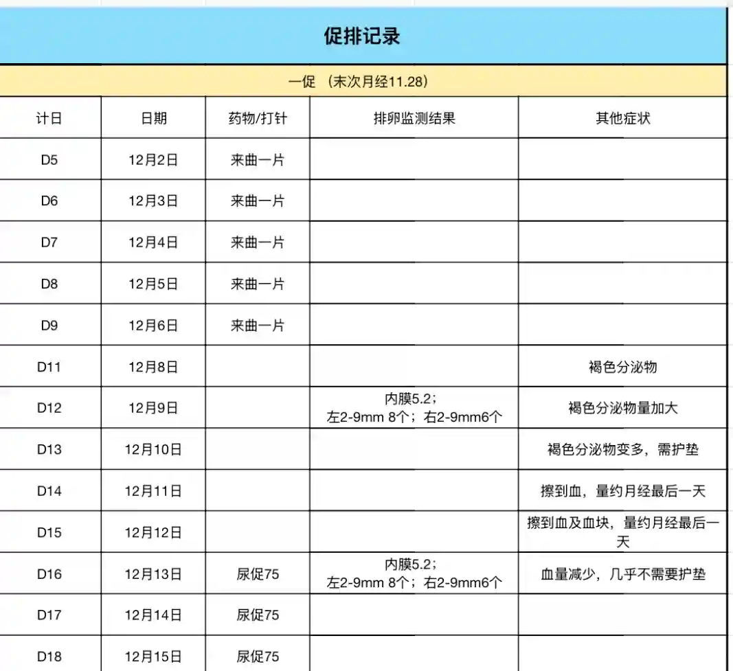 调理了三个月让激素都在正常范围内后,11月医生还想看一下我自己是否能正常排卵,事实证明有一个12mm的优势卵泡,本想助力打了三针尿促,但是他就定格在那个大小了,后来萎缩了考虑周期快临近了就放弃了。