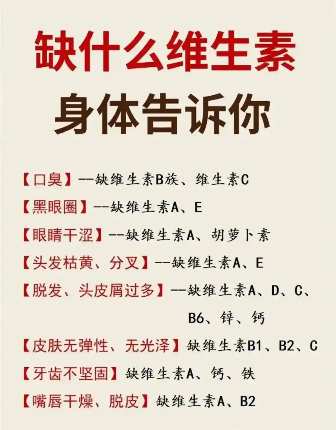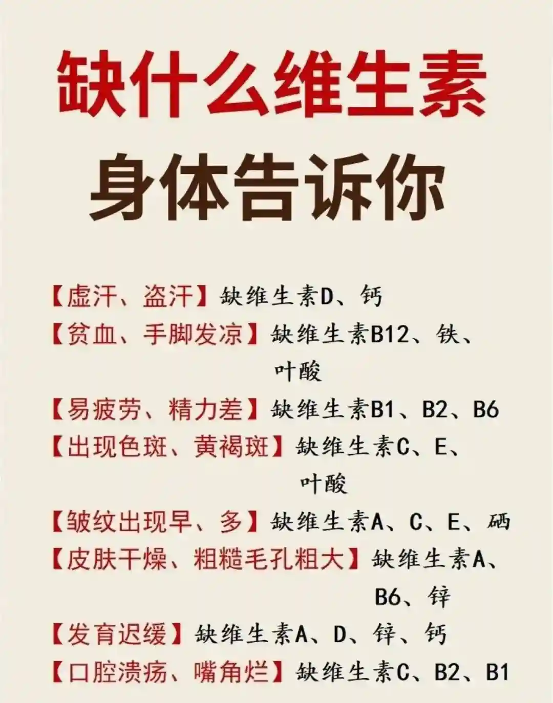 12、骨骼:VD、钙、镁、磷13、血糖:VC、D、B族