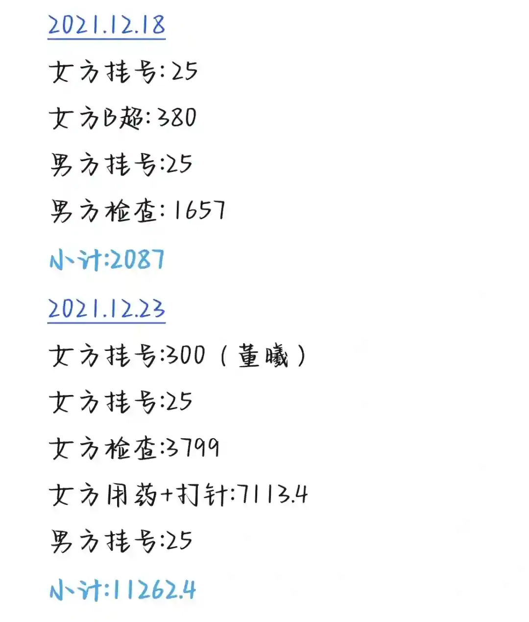 PS:我们全部都是自费,其中女方检查里应该是有可以用医保的项目,大概能节省2000多,但是得过一周时间去徐汇区中心医院开单子,太麻烦而且时间跨度太长可能就赶不上做经期检查了,所以果断自费。
