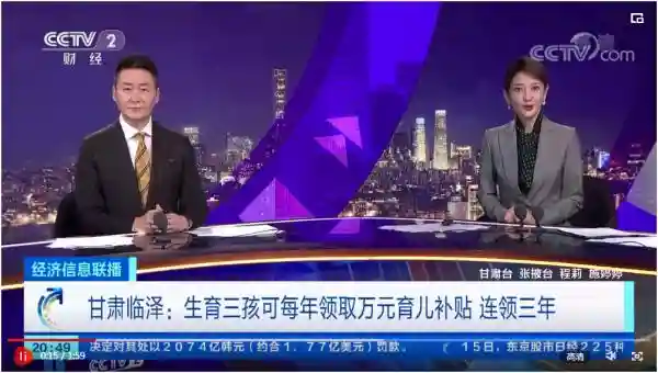 甘肃临泽市民:新政策是从9月9日开始的,我们正好第一批赶上这个政策,领到3000元的生育津贴、5000元的育儿津贴,这政策挺好的,以后家庭条件好的话,就再生个三孩。