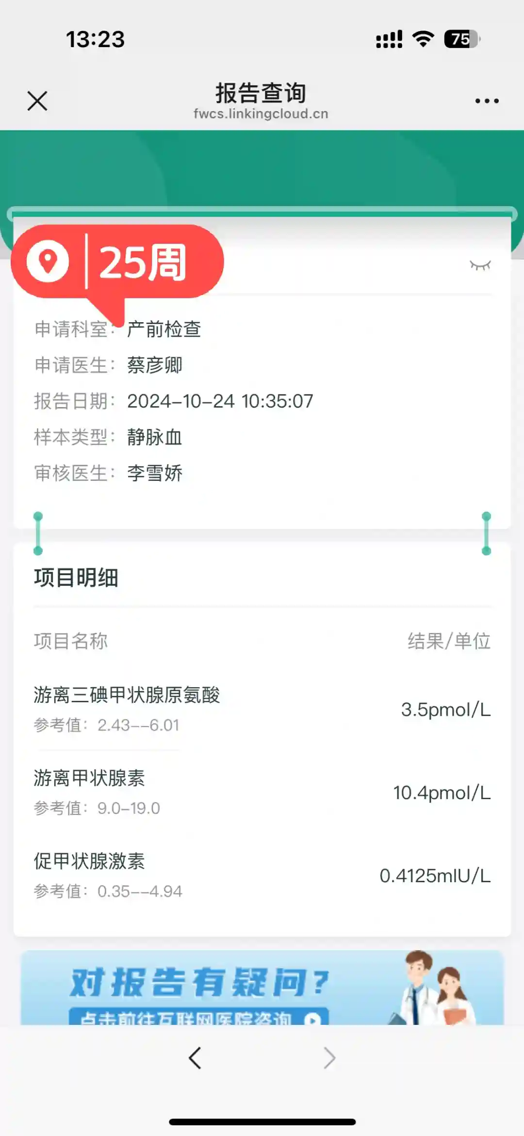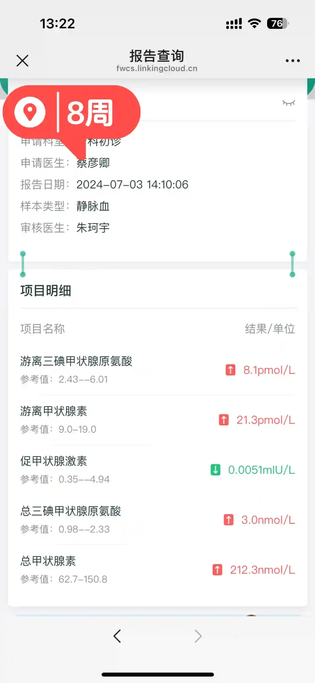 到25周,已经全部恢复正常。所以孕早期遇到一过性甲亢的孕妈妈别慌,都会好的。当然,判断自己是不是一过性甲亢(很早之前我有一篇笔记)最重要还是遵yi嘱啦。