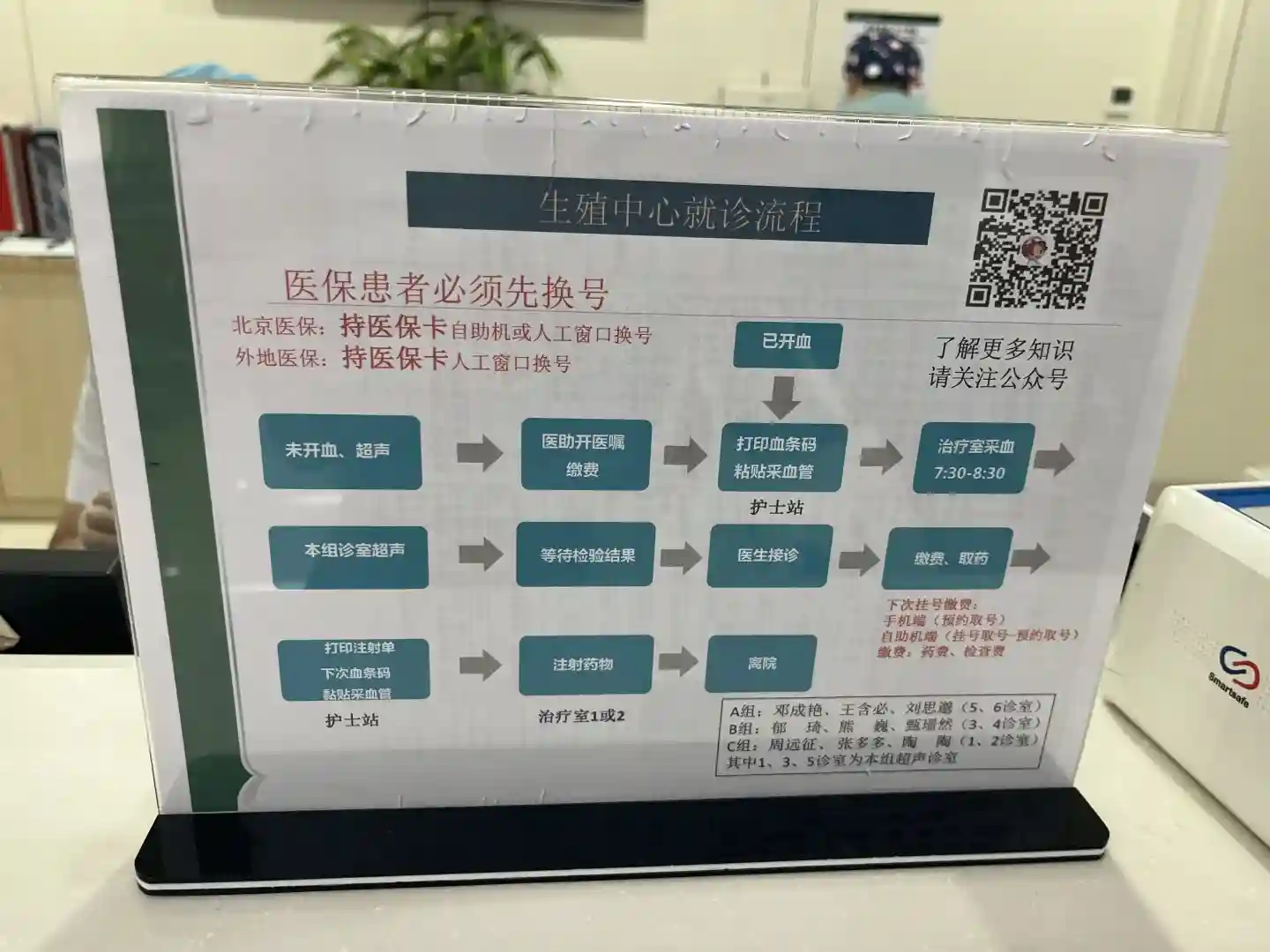 【7月4日】经过在内分泌与生殖中心跟着郁琦大夫一年的调养无果(排卵检测、促排),我终于决定试管,并在各项检查做完之后,在这一天和老公一起来到西院生殖中心建立病例档案(图2️⃣),我被分在郁大夫所在的【【B组】】(图3️⃣是郁大夫的采访在西院生殖中心循环播放)。