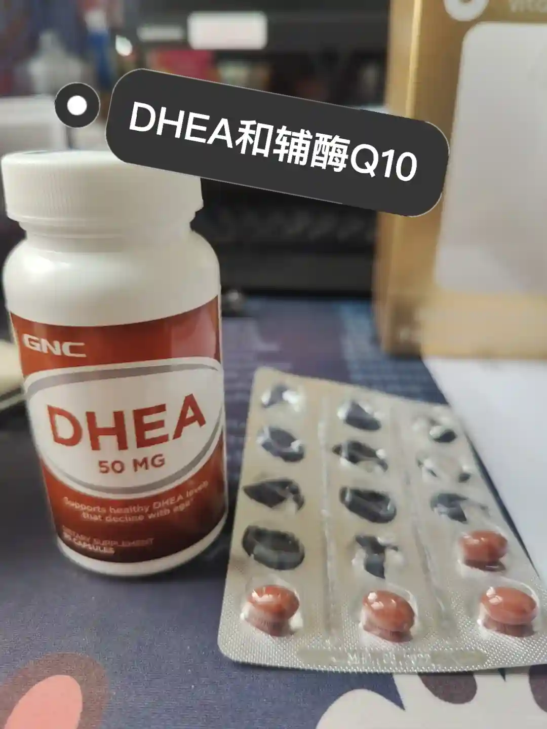 国庆节前,脸上开始爆痘,网上查的是因为和DHEA和辅酶Q10造成的,我就把药停了。