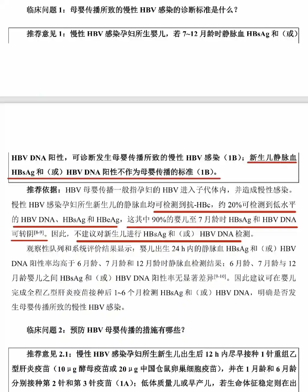 原来,乙肝妈妈所生新生儿的静脉血均可检测到抗-HBc,约 20%可检测到低水平 的 HBV DNA、HBsAg 和 HBeAg,这其中 90%的婴儿至 7 月龄时 HBsAg 和 HBV DNA 可转阴。因此,不建议对新生儿进行 HBsAg 和(或) HBV DNA 检测。