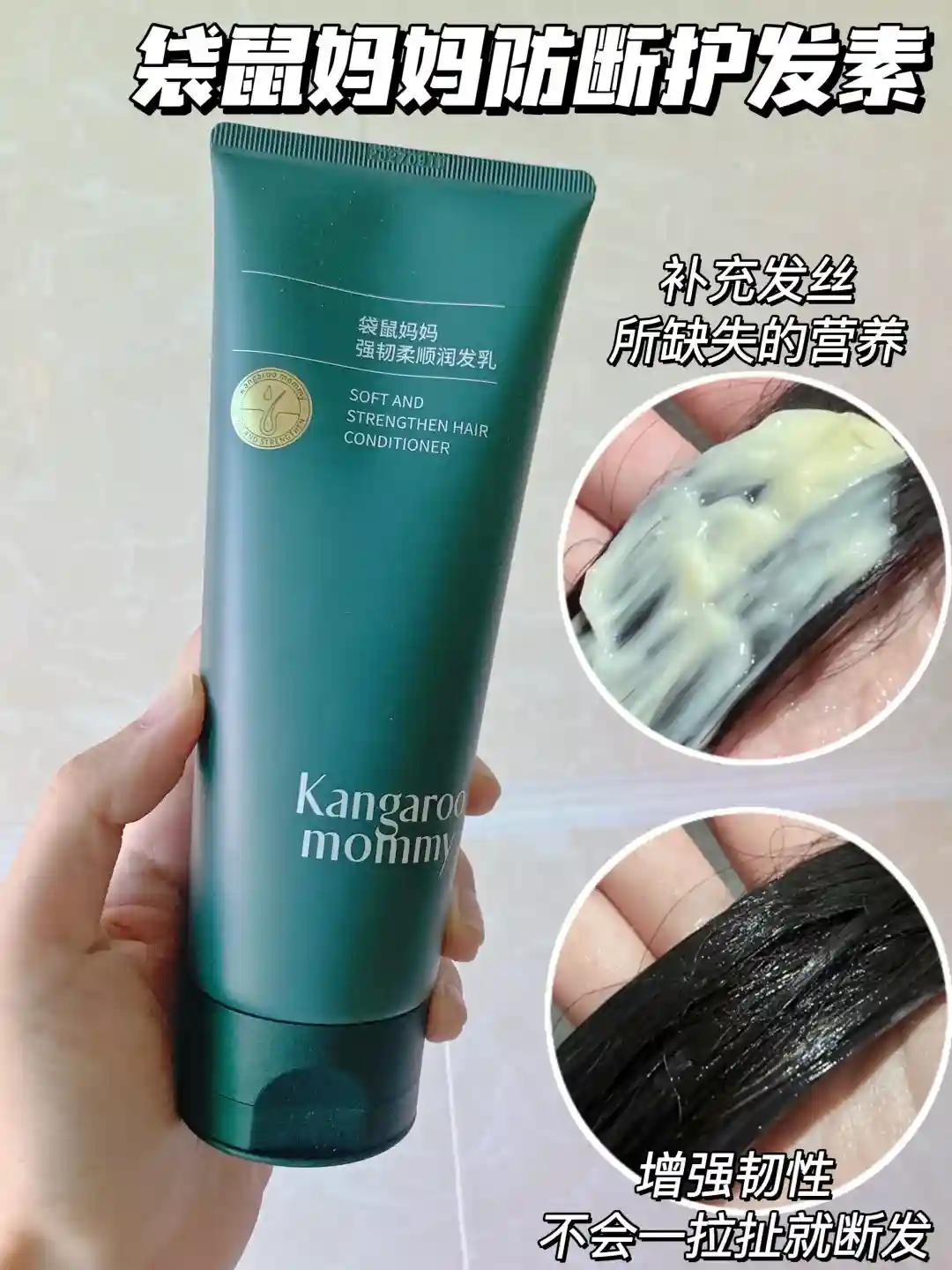 搭配袋鼠妈妈防断护发素使用,能补充发丝流失掉的营养