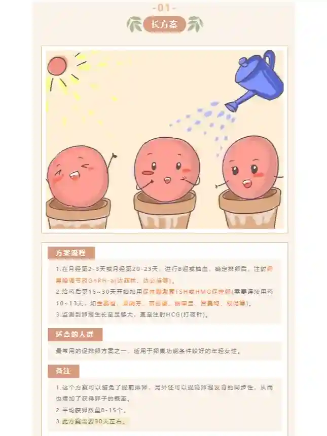 在建档和确定进入试管促排环节后,医生会与我们沟通如何制定试管的方案,方案我也梳理了一下主要的几种常见的(见图片,来源于ARS生育力保护公众号)。我们夫妻双方在衢州人民医院定方案的时候,傅主任以及助理医生一对一,很详细地跟我们沟通了相关情况,主要的内容涉及的就是个人的身体以及家庭的经济情况,因为一方面促排所使用的药物有进口和国产,价位有高低且相差挺大;另外一方面方案也有长短,要根据个人的身体情况进行确认。那今天的内容就简单到这儿了,方案的制定最好还是要跟自己的医生多沟通,说明自己的诉求与实际情况,然后遵医嘱,其实试管的整个过程也在告诉我们放心把自己交给医生!