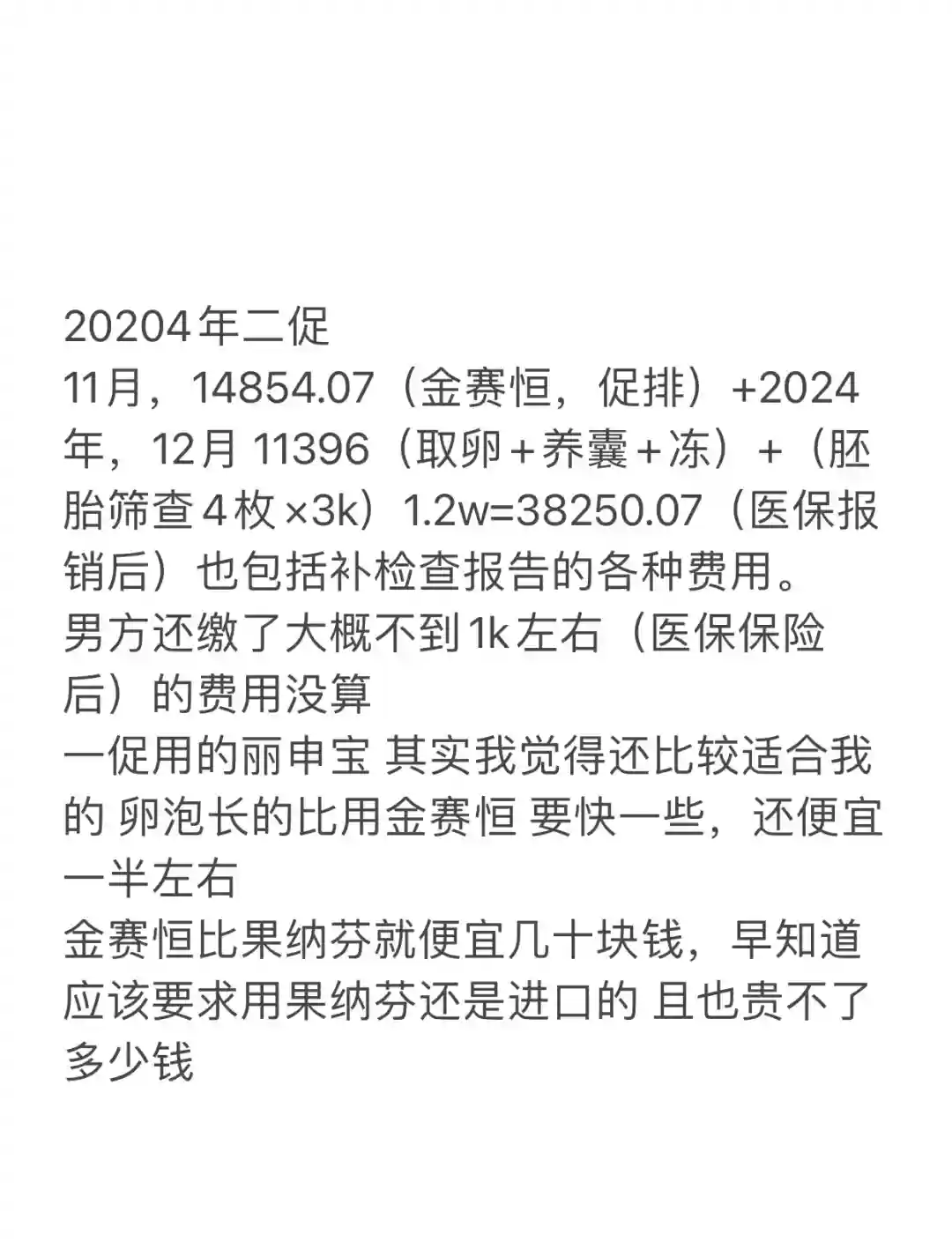 第一次促排取卵+3次 解冻移植(未着床)的费用简直不敢算,之前还有各种检查,理疗+中药+针灸+艾灸+保健品每个月几大千,根本不敢算,之前大概估算了一下,差不多10个W了。