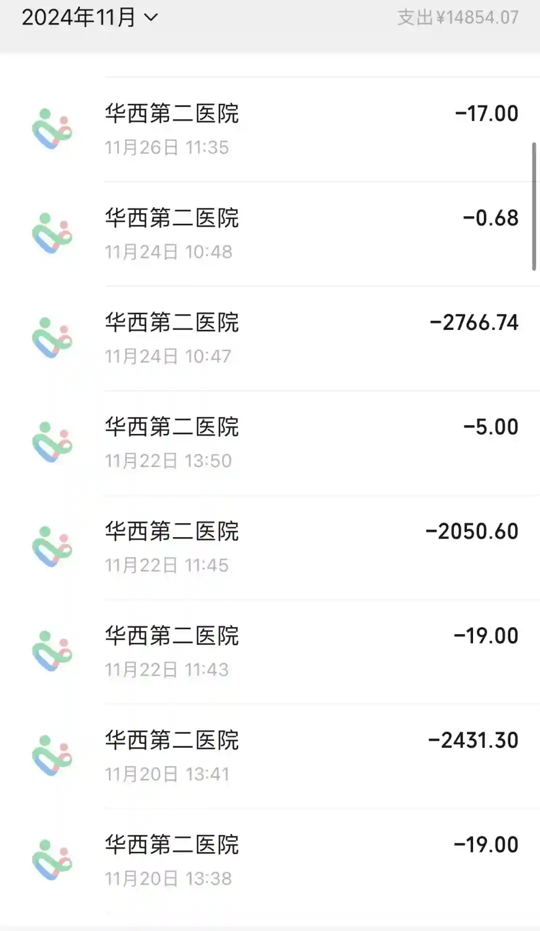 医保保销后,本次费用:38500