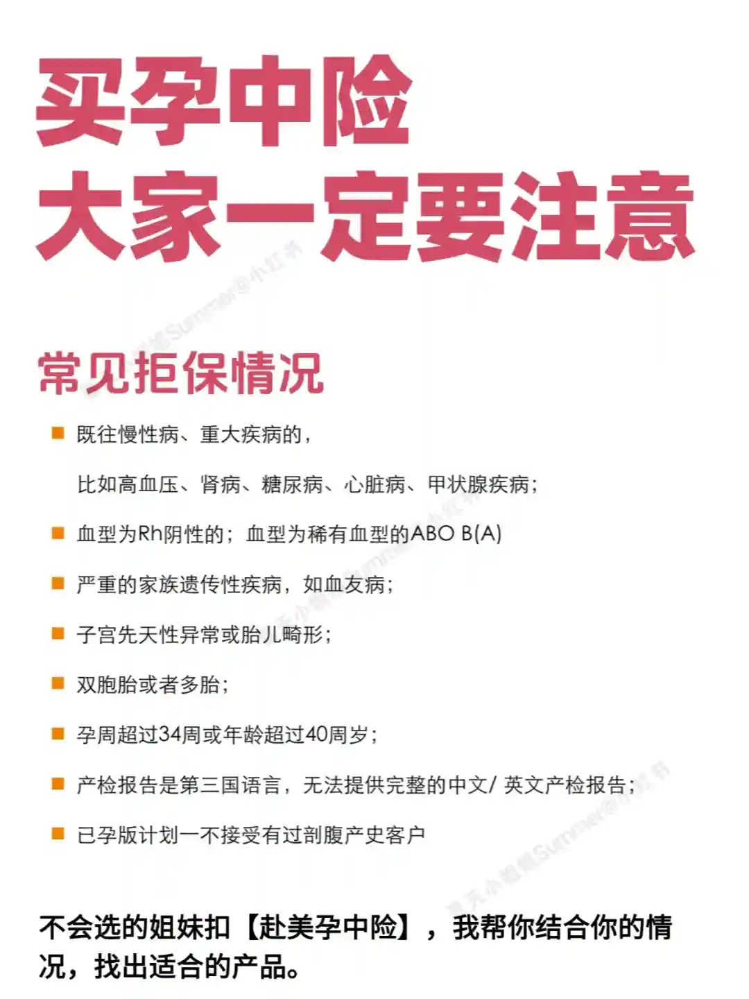 ❌ 去赴美生子找summer咨询和投保的准爸妈越来越多,保司孕中险的投保范围也变得越来严格。