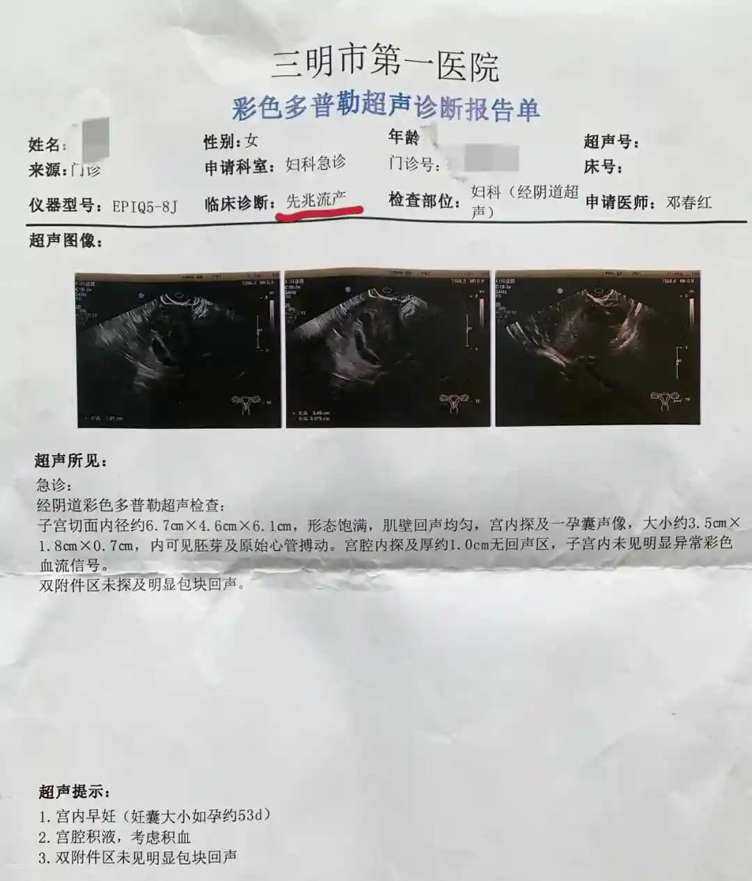 从家里到彩超室,我的眼泪就没止住,什么情况都想到了。做阴超的医生给我看了,我哆哆嗦嗦地问了一句,还在吗?医生说在的,孩子好的,我又泪崩了,医生说你怎么哭了?我边哭边说,我忍不住……门诊的医生也没什么可处理的方法,知道我都有保胎药,只多给我开了一针黄体酮,其它还是继续吃。