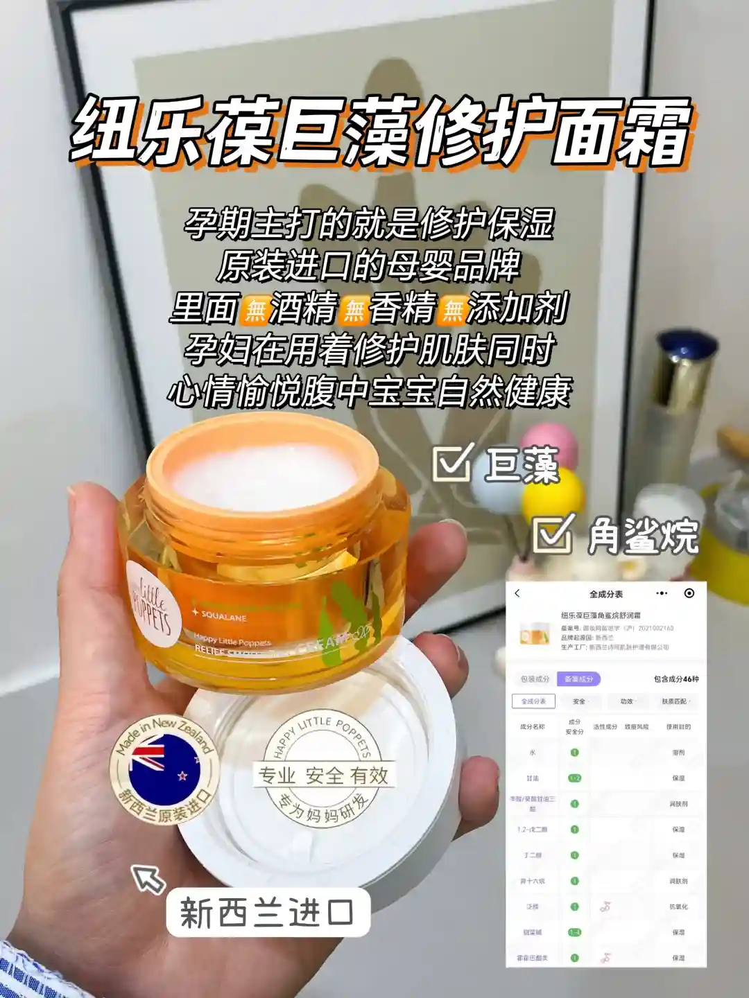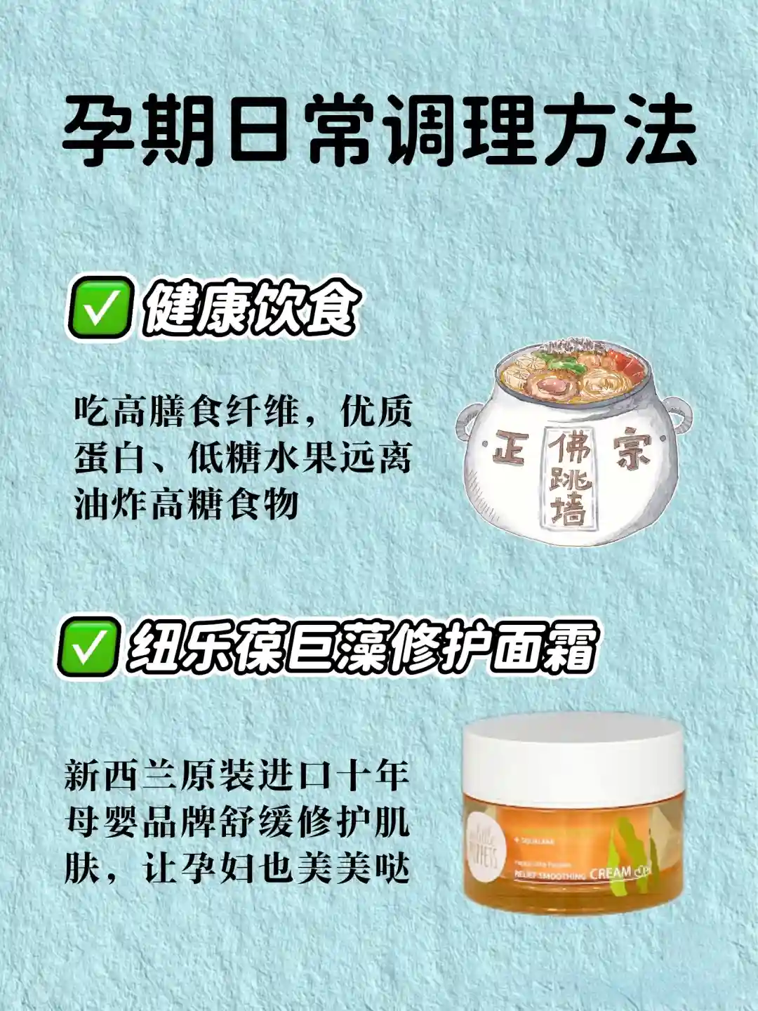 ②纽乐葆巨藻修护面霜,新西兰进口十年母婴专妍护肤品牌,里面的成分干净0酒精0香精0添加剂,含巨藻成分修护肌肤真的嘎嘎牛!③规律作息早睡早起不熬夜,尽量每天晚上十一点之前睡觉