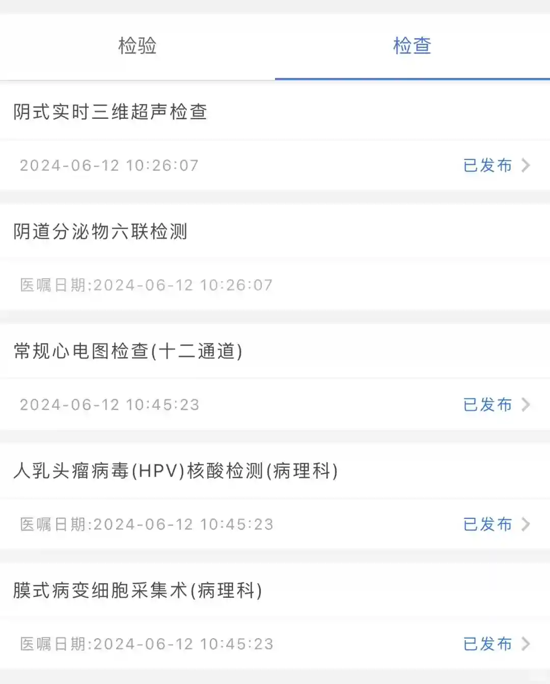 一上午就检查完了,下午结果就都能在手里查到了(除了HPV检查结果要两三天能出来)