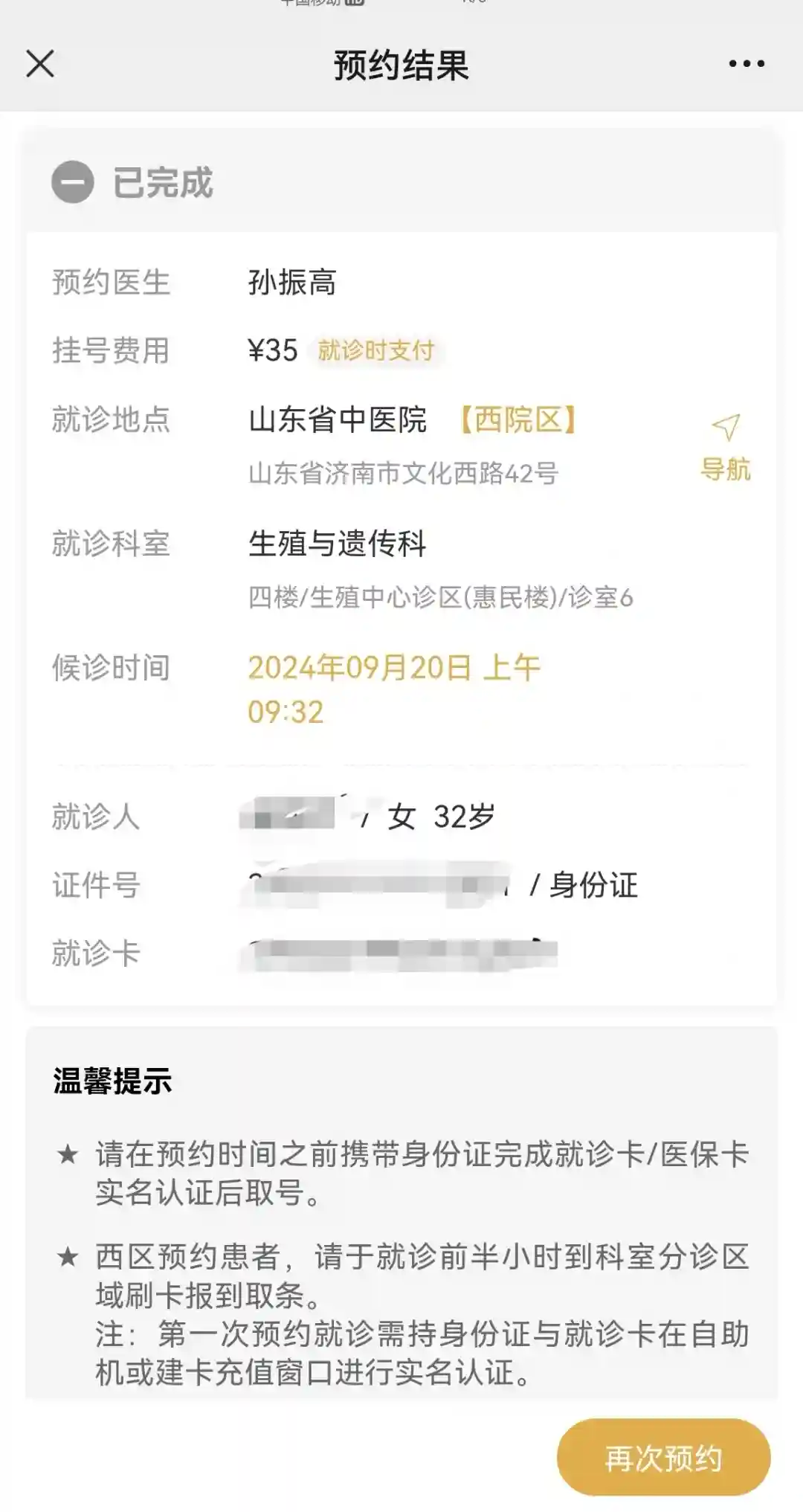 🔘我第一次去是9月20日去的,是姨妈后的第一天去的,线上没挂上号,是去现场挂号的。(早上7点在线上点挂号就行,得拼手速,很幸运我试了两次就挂上了)