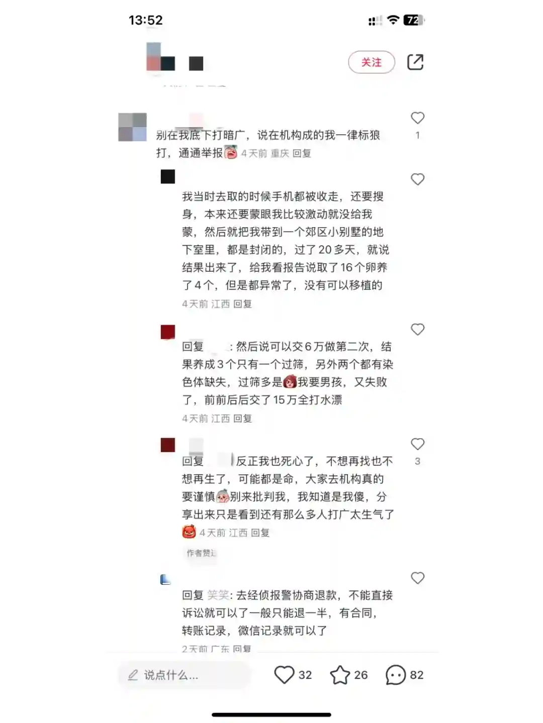 我的天太惨了,这事儿还没完呢,地下机构的人又忽悠她,说交 6 万可以做第二次。 她也是不丝心,就又交前做了。这次养成 3 个,可只有 1 个过筛了,另外两个都有染涩体缺失。这人原来是铁了心要个楠孩的,这下又泡汤了。 前前后后加起来,一共交了 15 w呐,全都打了水漂,啥都没得到。