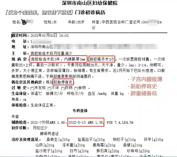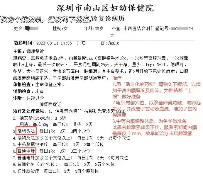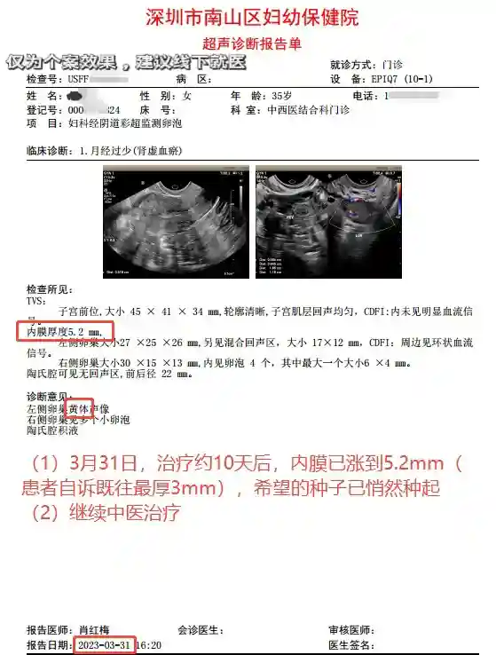 图文中的美妈比较特殊,说在外面已经用了大量的雌激素等药物,内膜最厚也只能到3mm。来到我这里,任务艰巨,最后是好的结局,非常好“孕”!听她说,剖腹产的时候,产科医生就当场感叹子宫内膜看着外观苍白,内膜确实难长,所幸她对中医效果敏感。