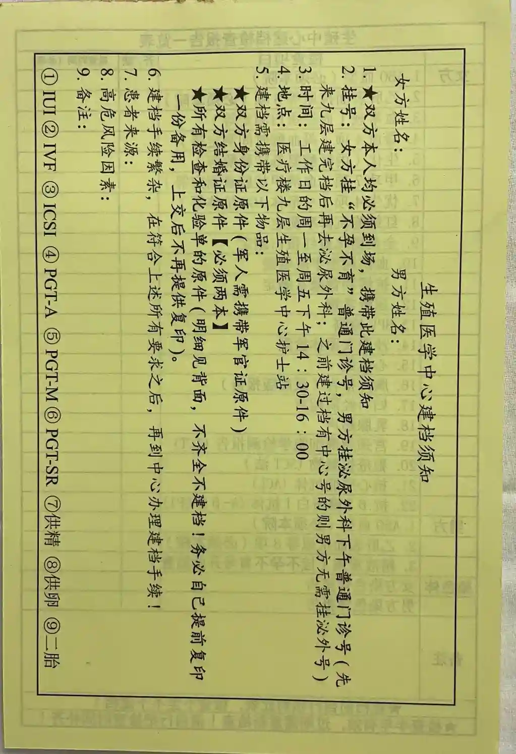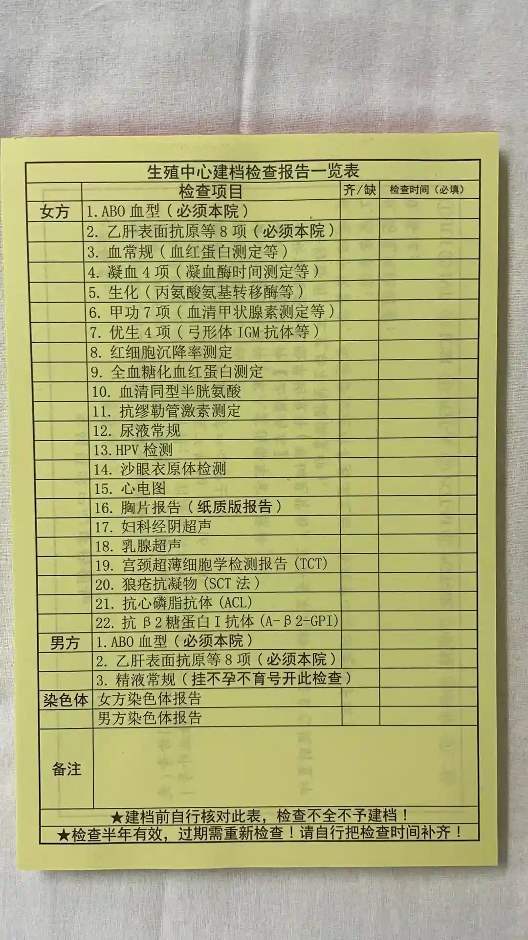 1.反面的男女方所有检查,除了染色体,其他检查都准备齐全,留好复印件(除了要求必须本院的检查,其他检查外院的也可以)