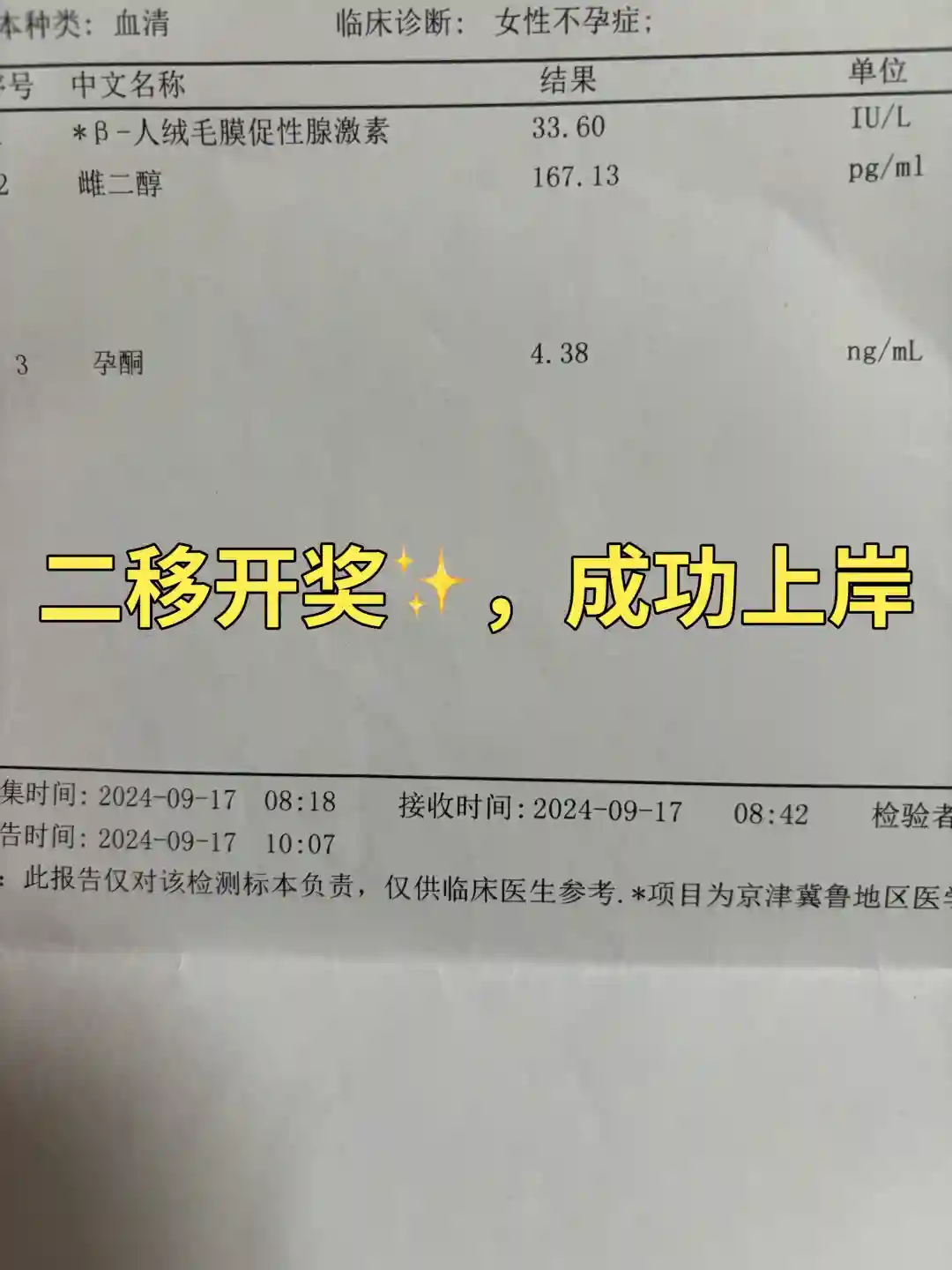#接好孕 #孕期就是一直在闯关 #欧气满满 #移植开奖 #胚胎顺利着床 #试管日记 #试管之路 #试管移植