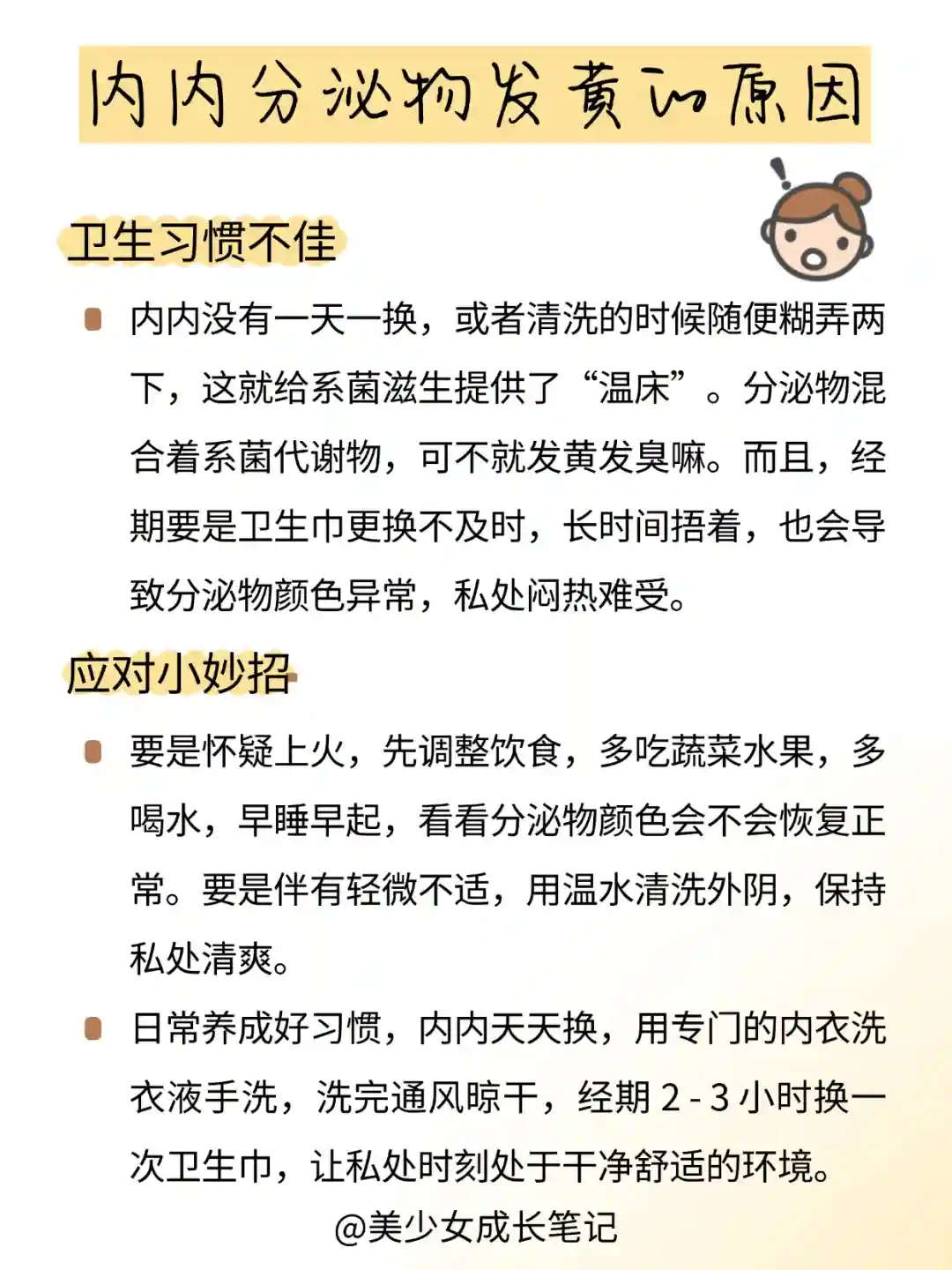 宝子们,私密健康可千万要重视起来,发现内内分泌物发黄别慌乱,冷静分析原因,对症处理,咱们一起守护好自己的“私密🌸园”💖。