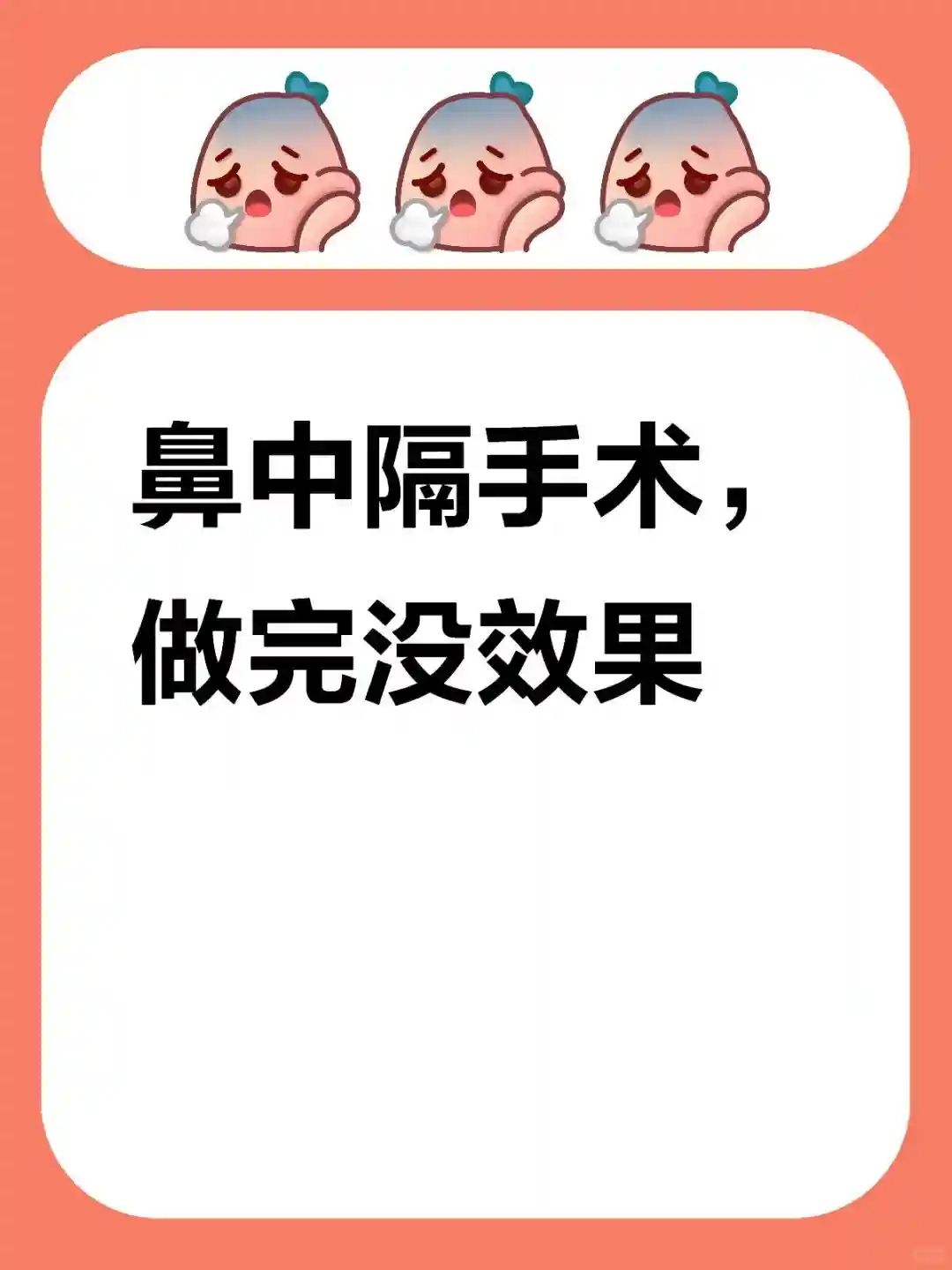 暑假在上海市第九人民医院耳鼻喉科做的鼻中隔偏曲手术,术后完全没有改善,有毛病的那一边还是长期堵塞无法呼吸。