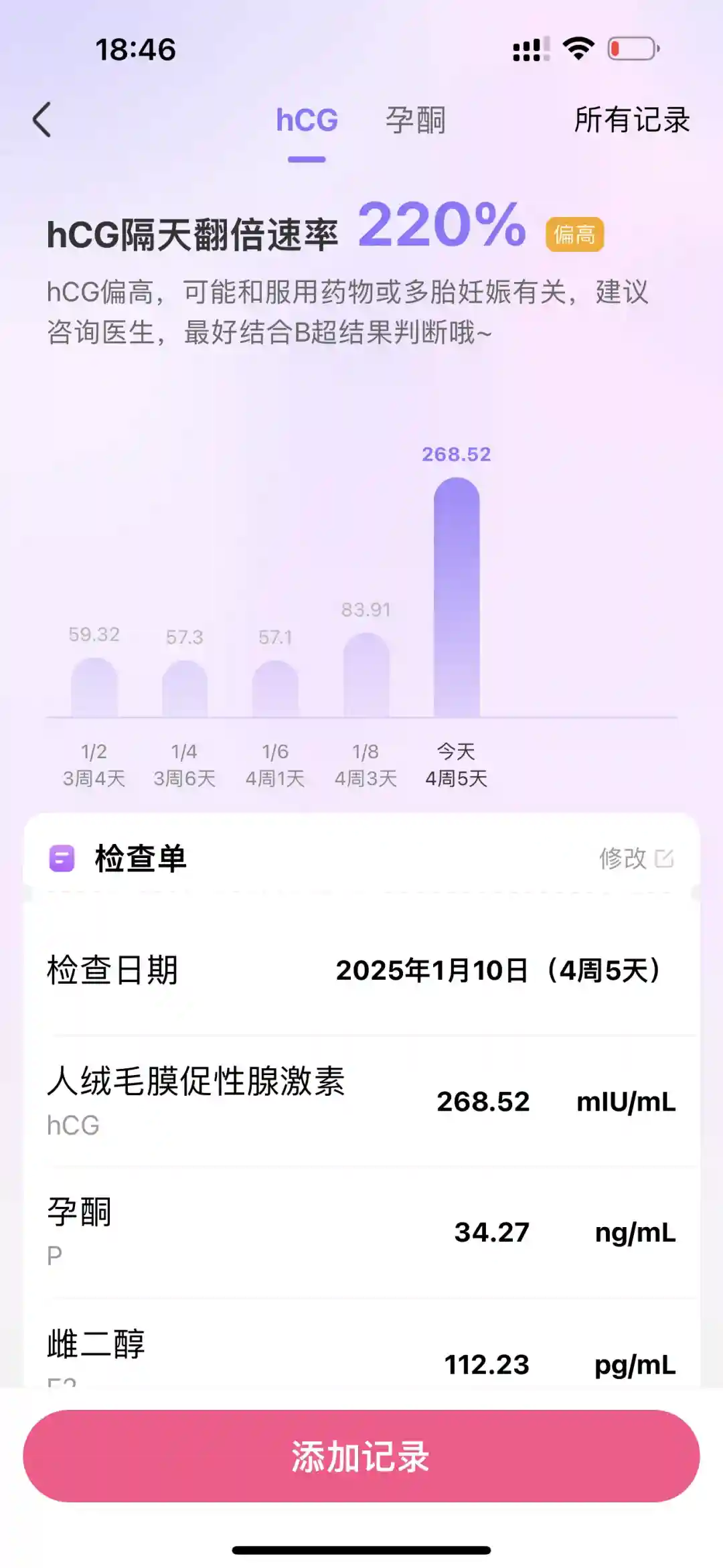 我没想到第三代试管也会这么难,可能是我没有了解过,太急了,朋友介绍的,说干就干了,我30岁,老公37岁,自怀了两个闺女,想要个👦,今年年8月开始调理身体,10月取卵,3个囊胚,三代筛查2👦1👧, 全部过筛,11月宫腔镜检查(所有的检查都是正常的) 12月2号开始进周移植,12月27号下午1点半左右移植的第6天冻囊胚等级5ba,这样的血值还有机会吗,加上移植日第七天验出来的血值59点多,医生都说很好,很开心,一促一移就着床了,我还期待着第9天的翻倍,结果降了2,心都拔凉拔凉的了,医生跟我说看下次翻倍怎么样,结果第11天也是一样,血值动都没动,移植开始劝我要不要停药,但是看孕酮是蛮好的,36点多,我跟老公商量了一下,要不停药吧,可能缘份还没到,宝宝估计想让我轻轻松松过个年,年后再来找我,吃完饭我想了想,说不定他只是比别人慢了一点而已啊,我跟我老公说想既然他来了,再给自己和宝宝一次机会,于是当天就从长沙回到家继续吃药打针(打针:隔天绒促2000,黄体酮60ml,肝素一支)(吃的药:早上空腹强的松,早餐后:叶酸,黄体酮胶囊,环袍素,孕酮片,维E,育胎丸,补乐佳)谁懂啊,加上我晕针,都不敢看,打针打到发抖,吃药也吃怕,知道第13天检查不抱希望了,拿结果前,我说摸着肚子说妈妈尽力了,这次还是一样的话只能停药了,看到结果,我激动了,马上拿检查单给医生,🧑⚕️跟我说,有一点机会我都会尽力帮你的,当天下午又打了hcg和黄体酮和肝素,今天是第加移植日15天,看到结果那刻,我真的好开心,是不是他知道妈妈想留着他,所以他也在努力,医生挺有耐心的,一直安慰我说可能是前面涨得慢,不要放弃,真的很感恩遇到这样的医生,加上我肚子不痛也不流血,就是胸涨。移植那边和当地的也说我这个宫外孕的几率不大,看看13号复查怎么样,虽然不知道最后的结果会怎么样,但是我知道我的宝宝也在尽力。宝宝,我们一起加油。