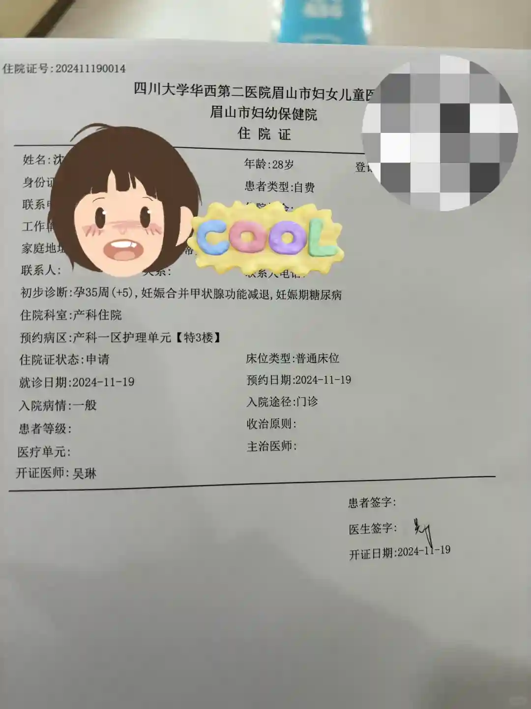 11.19早上,去做完最后一次b超和胎监,找医生开入院证明,在前台签字,带走孕期所有产检资料