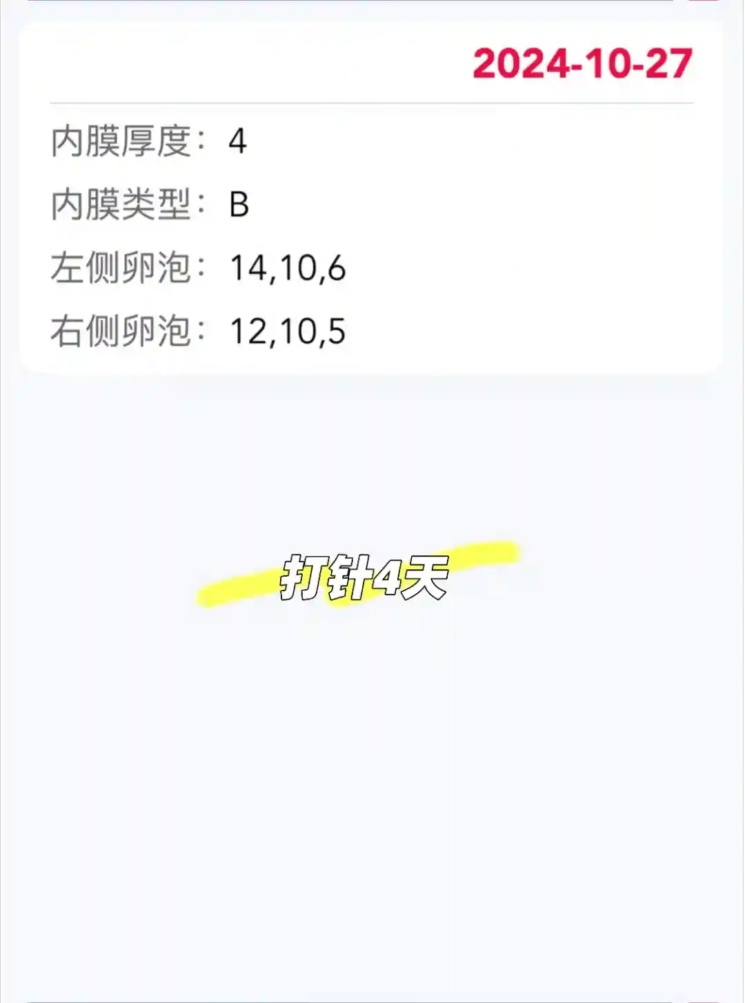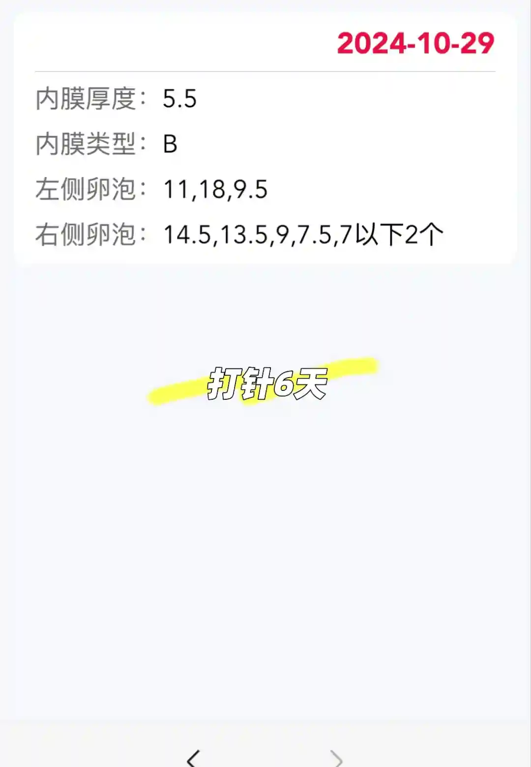 5.我应该右侧卵巢功能更好一点,初始只有一个泡,最后居然是这边取到3个,上次自怀也是右侧排卵。接下来年底了工作很忙,明年1月再进周。这次遇到一个姐姐微刺激取到3个,药费一千多,感觉我这个拮抗剂和微刺激的结果没有太大区别,下次如果有早发的大泡我就试试微刺激,都均匀的话就还是拮抗剂。