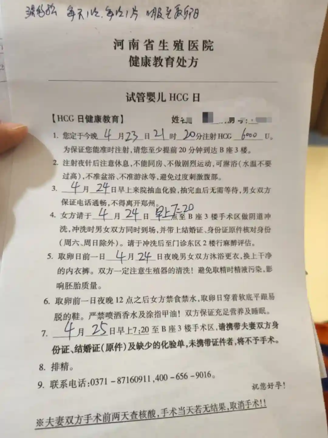 💫关于核酸:25号手术,需提供夫妻双方23-24号核算报告纸质,因为要留档。今天(4.23)郑州几个区有全民核酸,这个结果也可以作为核酸证明,但必须打印出来交,并且要显示名字和身份证号才可以用。