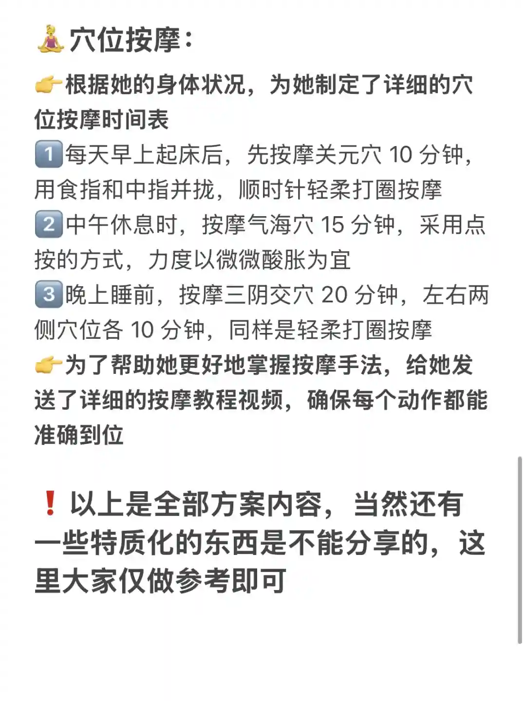 👉根据她的身体状况,为她制定了详细的穴位按摩时间表