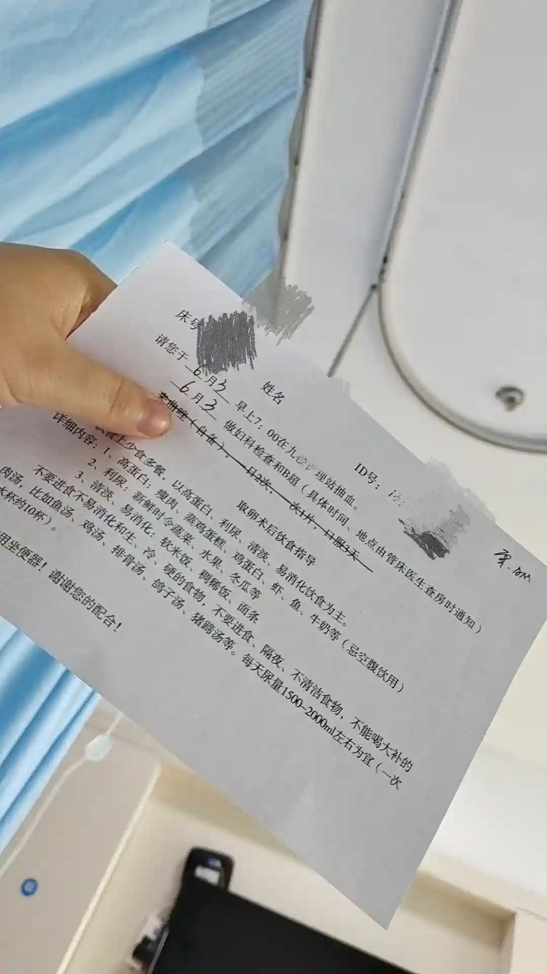 护士让我半个小时后就小便观察出血和毫升量。第一次才50毫升,里面有血。护士让喝200毫升水,半小时后小便。第二次150毫升,血量减少。后面就让吃饭,正常喝水,正常小便。快到中午时护士害怕我中午出血量增加,没有医生,害怕危险,就让我去到房间检查,这次真的有点难受,医生在没有润滑的情况下用鸭嘴钳和纱布去处理出血点,特疼。结束后医生说应该没事了,出血点已经处理了。我就躺着休息了。期间喝的就是脉动,原来它真的能利尿。还有就是,小红薯很多都说取完卵后要多吃虾,吃多少多少,真的因人而异,我感觉大家胃口在当天都没有很好,会比平时饭量小很多。