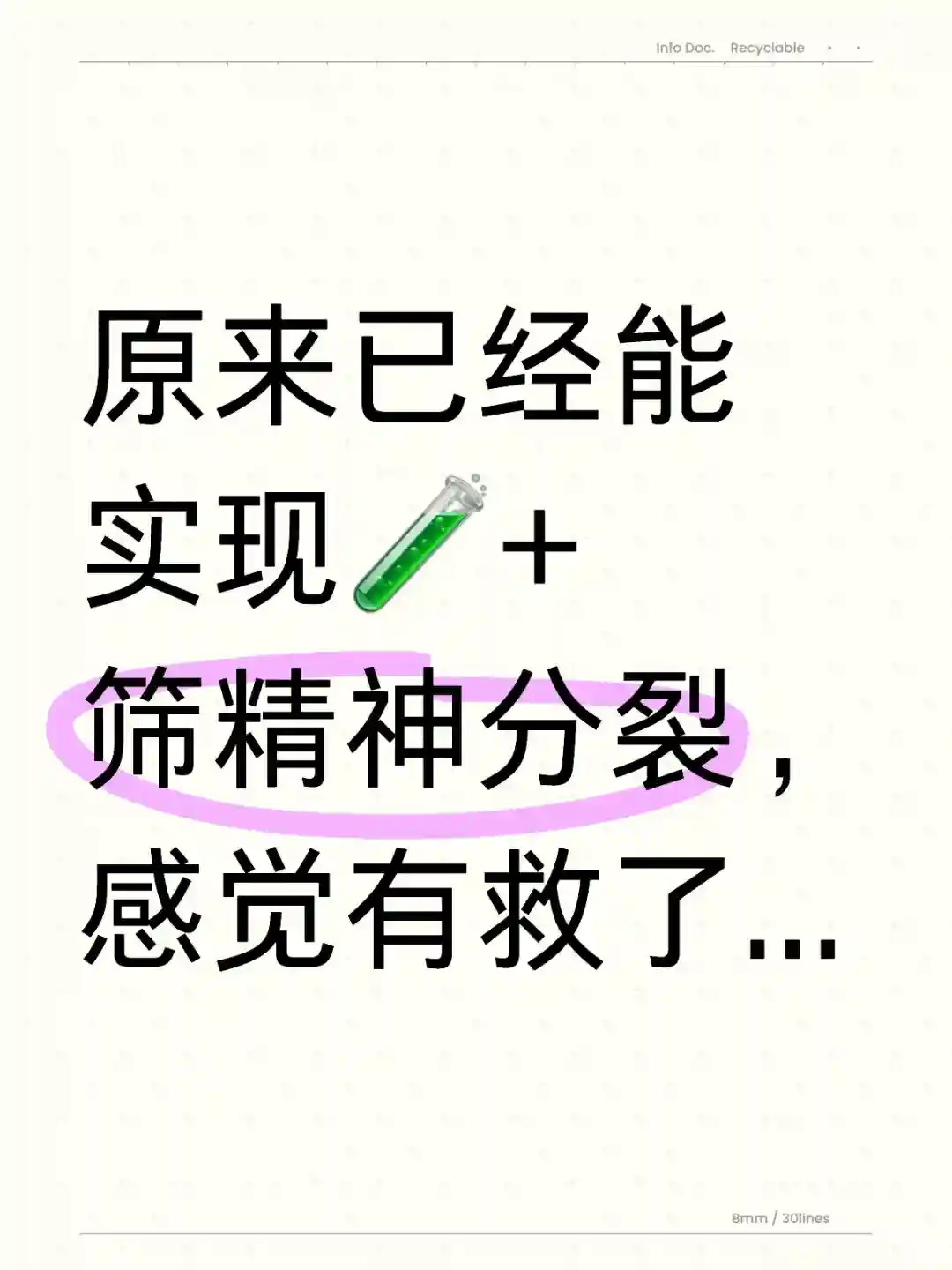 原来已经能实现🧪+筛精神分裂,感觉有救了..