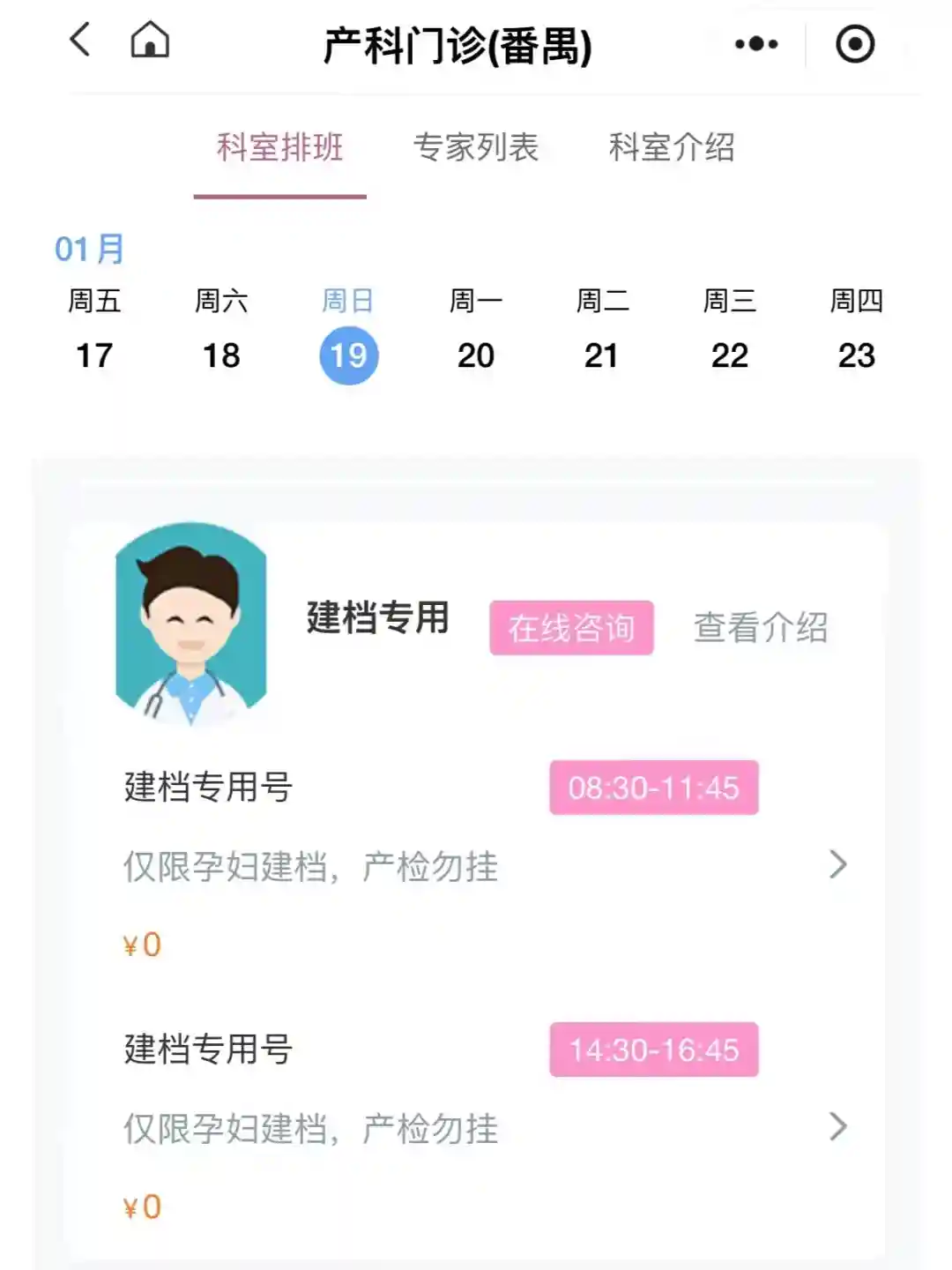 粤妇幼小程序—在线挂号—产科门诊-建档专用号(见图2)