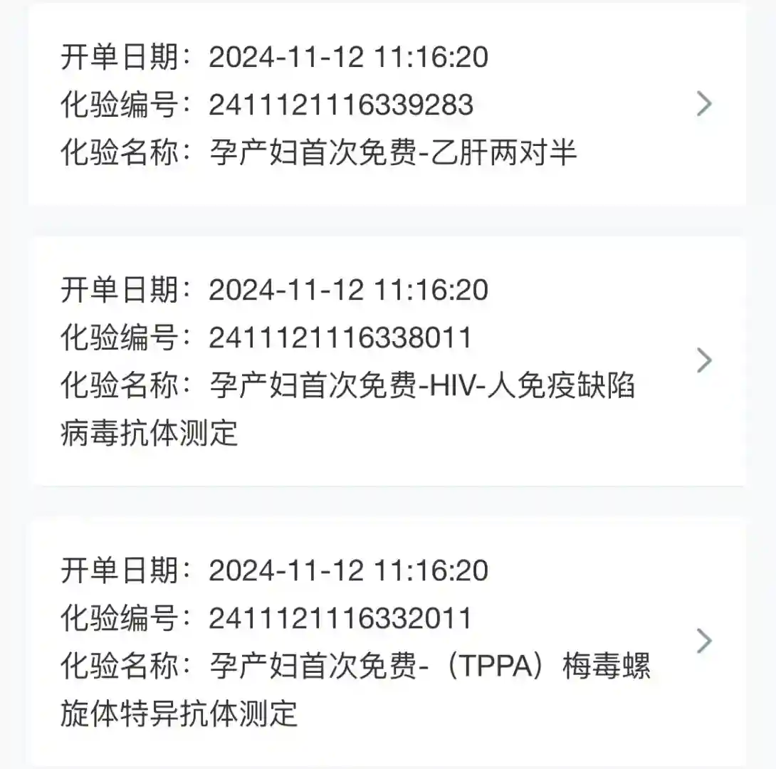 怀孕后的艾滋、乙肝、梅毒检查报告(这些都是免费做的,可以让产科医生开单然后去抽血,报告一般1-2天左右出)“见图4”