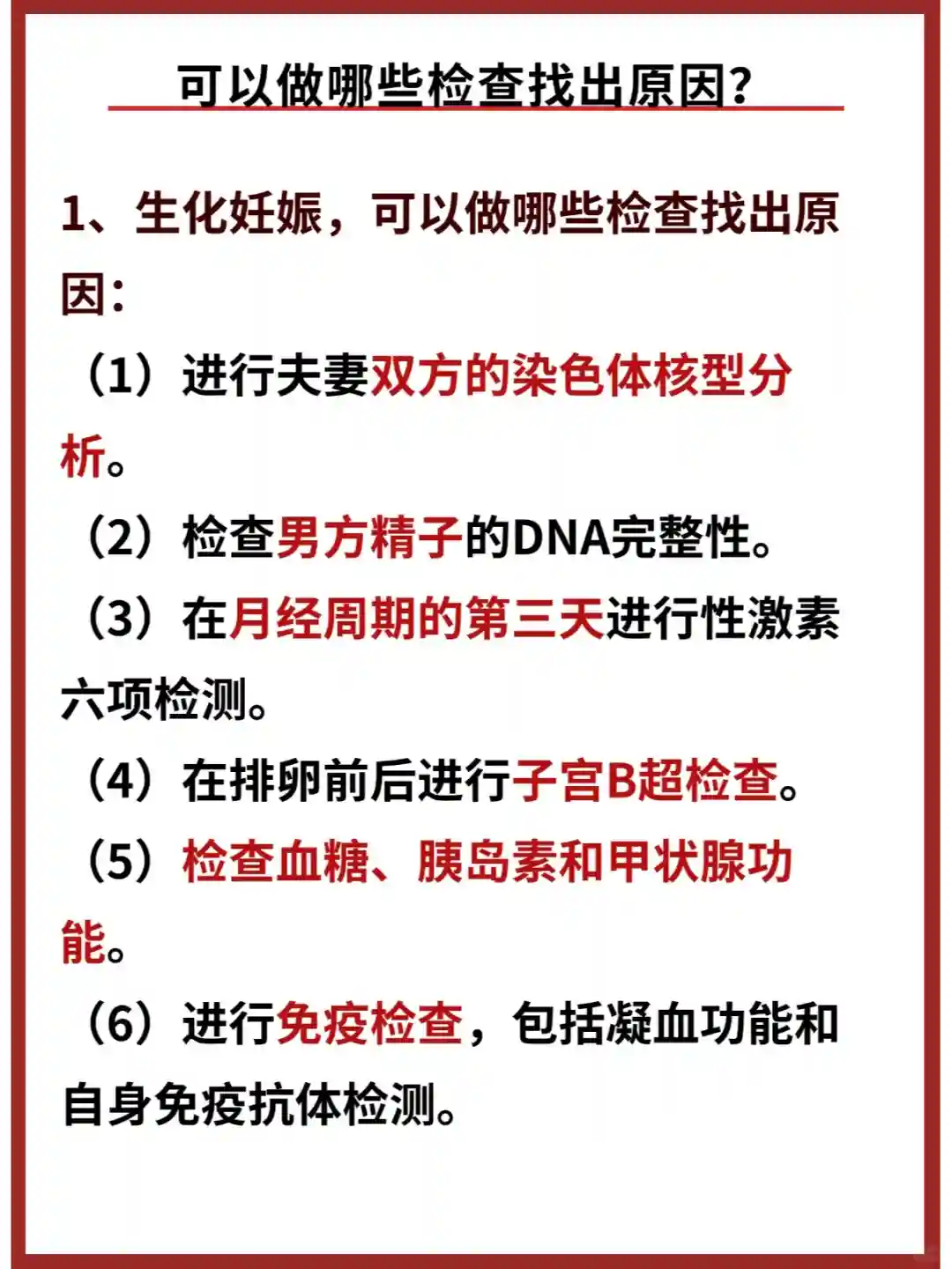 在生化妊娠后,可以做哪些检查找出原因: