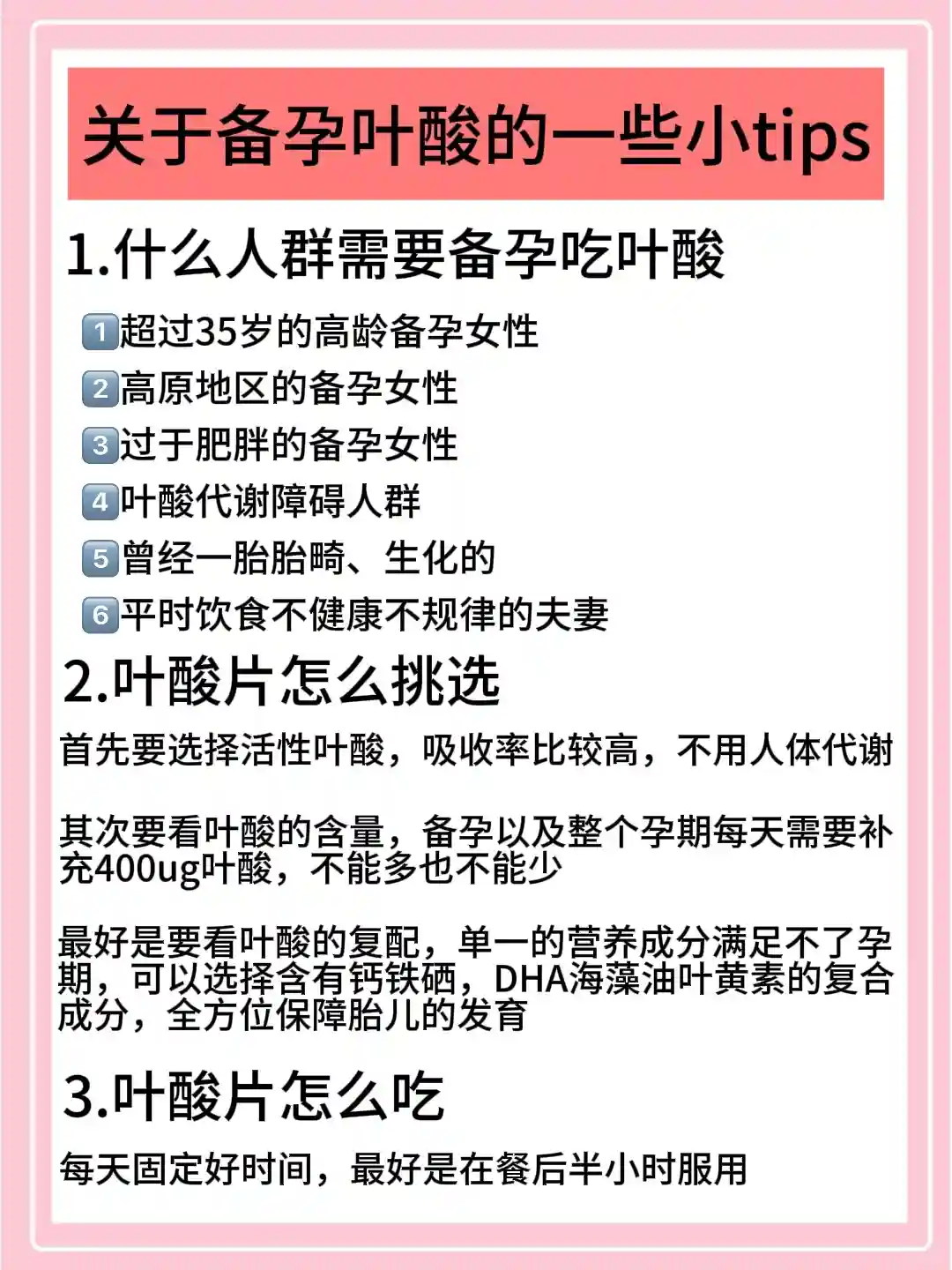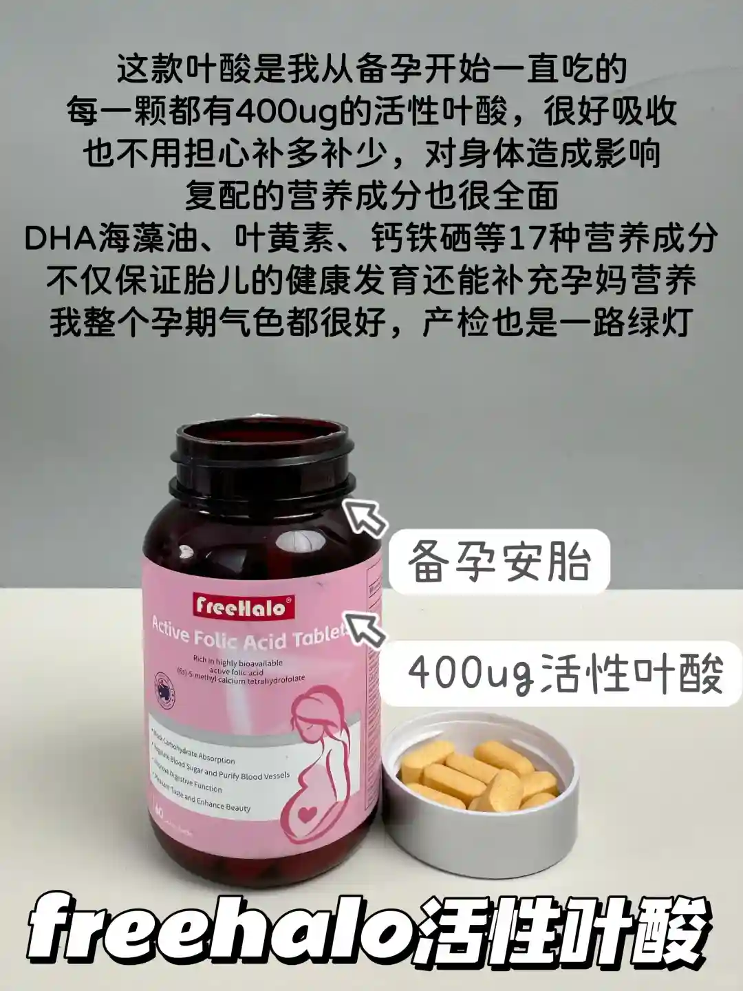 ❗️2.看成分,备孕期非特殊情况不吃碘和钠的,孕期吃含DHA海藻油、钙铁锌的促进吸收 ✔❗️3.选对叶酸,叶酸分为普通和活性,优先选择活性叶酸、吸收率和代谢相对都比较好