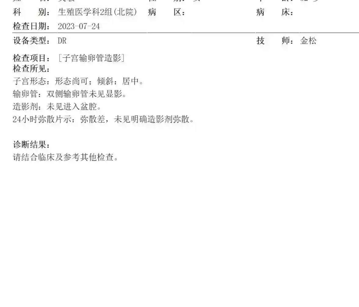 7.31号拿造影报告,带着之前所有检查结果,挂号找王主任看结果,原来是我的造影剂根本就未进入盆腔,造影片上都看不到输卵管说明堵的彻彻底底。