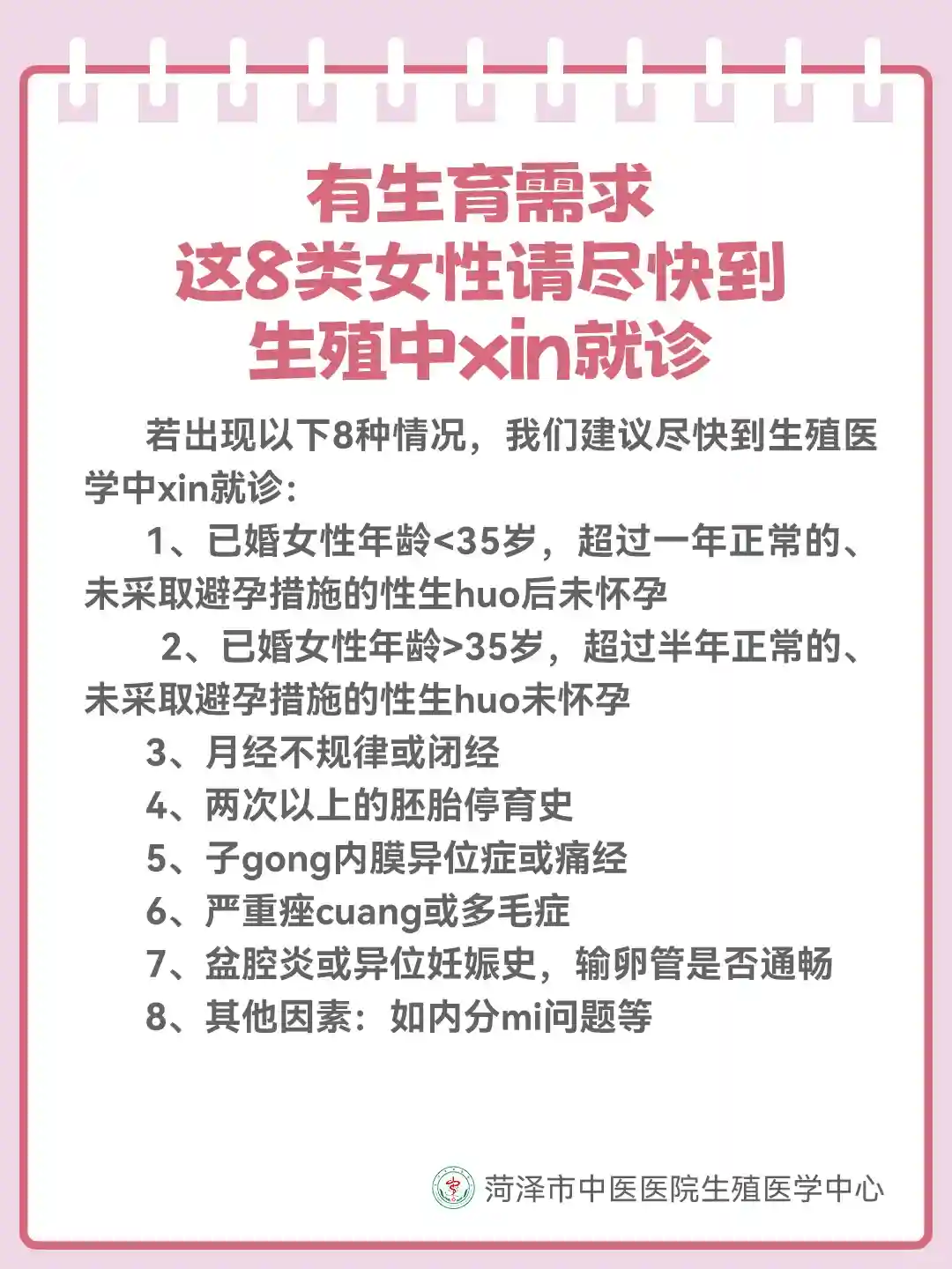 有生育需求这8类女性请尽快到生殖中xin就诊